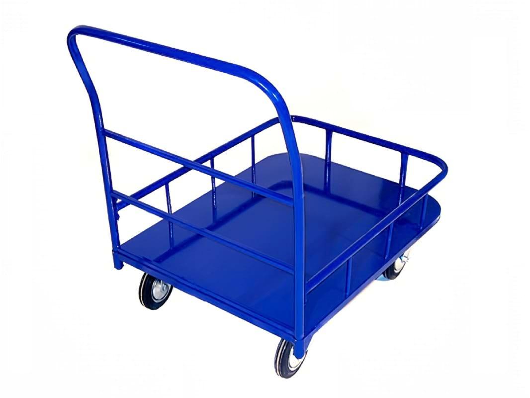 Название говорит само за себя – бортики полноценные, сделаны из трубы. Если требуется, легко снимаются. Расширяет перечень товаров, которые можно безопасно перевозить. В отличие от тележки со съемными сетчатыми бортами, эта выдерживает более высокое давление на борта. Размер груза должен быть не менее 100 мм. Для удобного управления оборудована двумя ручками, можно перевозить по принципу «тяни-толкай».