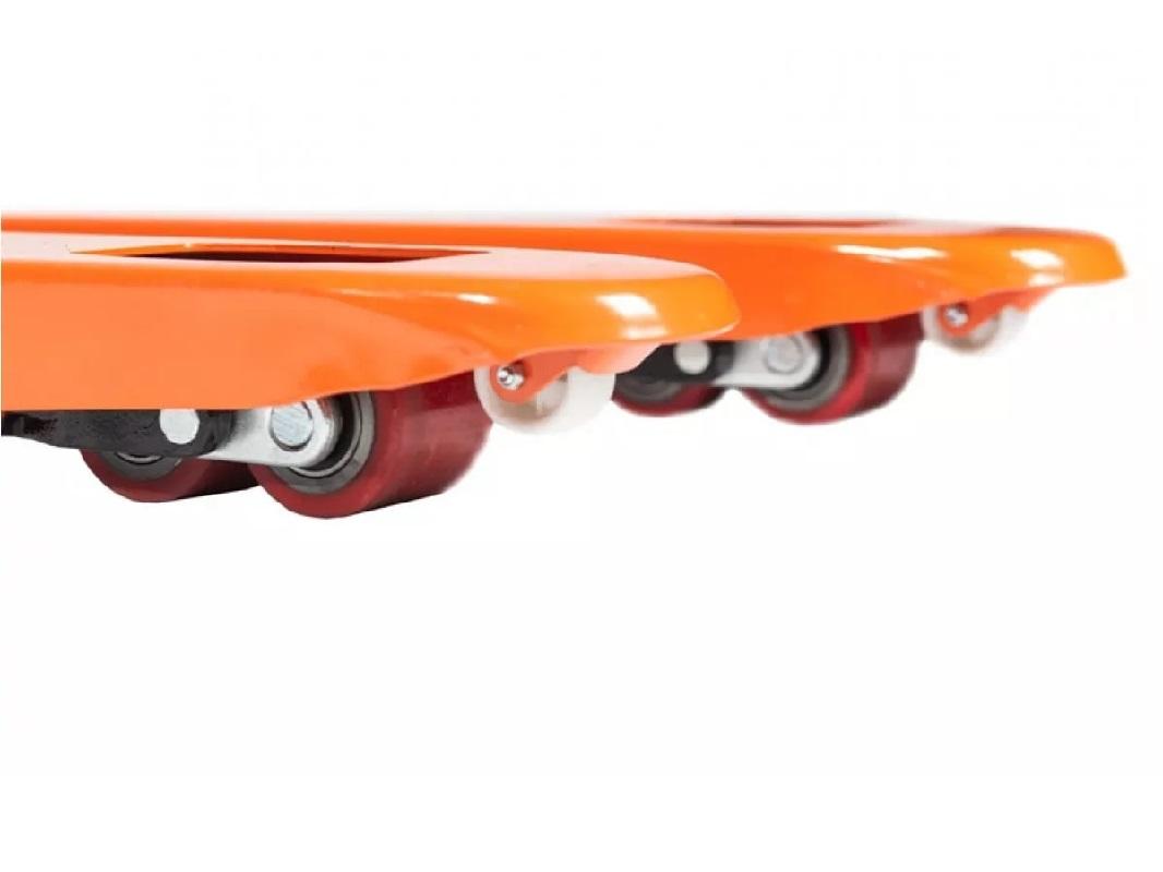 Конструкция выполнена из прочного металла, а силовая рама из профильной трубы способна выдерживать значительные нагрузки на скручивание и изгиб. При этом сама тележка отличается небольшим весом и простотой в использовании.
