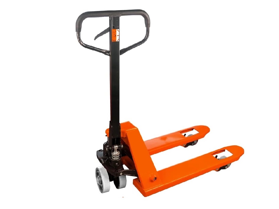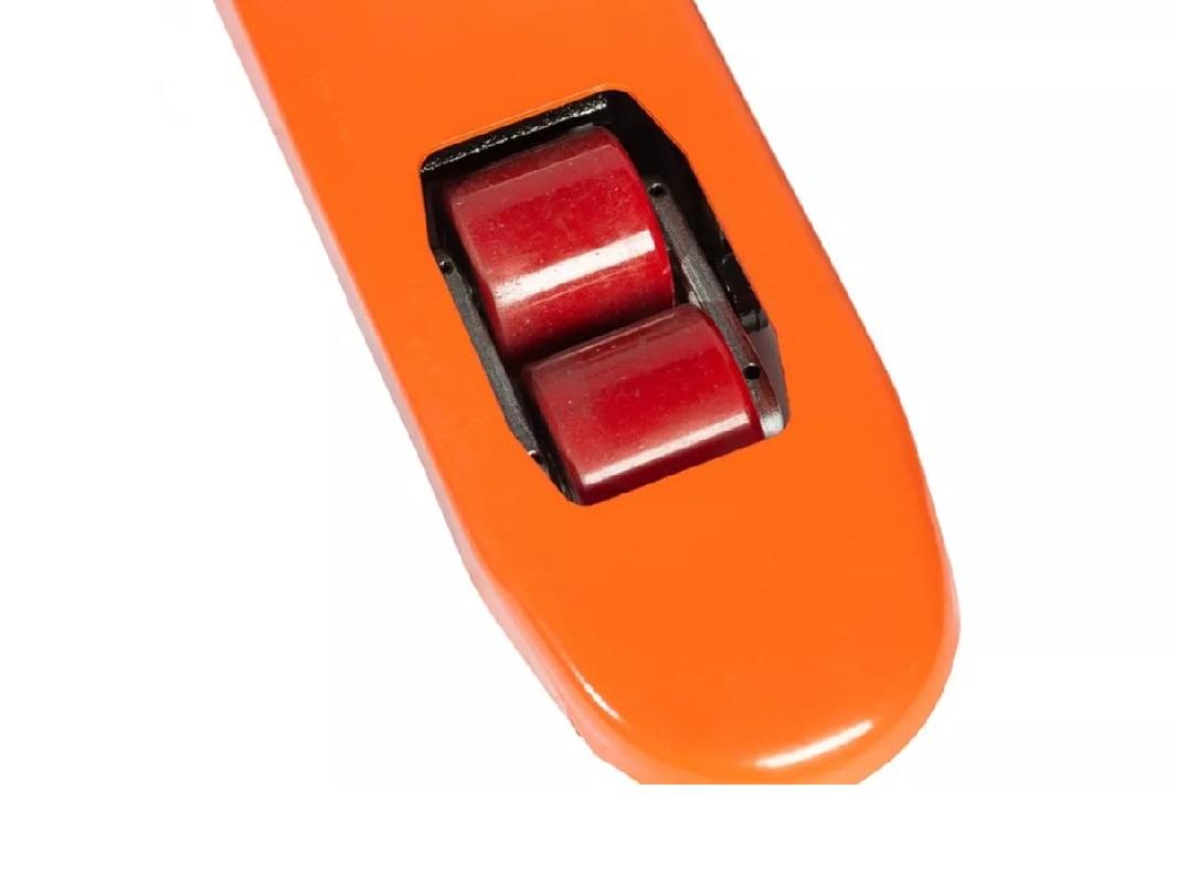 Поддоны легко подхватываются вилами и поднимаются с помощью гидравлики. Конструкция вил позволяет работать как со стандартными, так и с европоддонами. Элементы управления находятся на рукоятке тележки, что обеспечивает простоту управления.