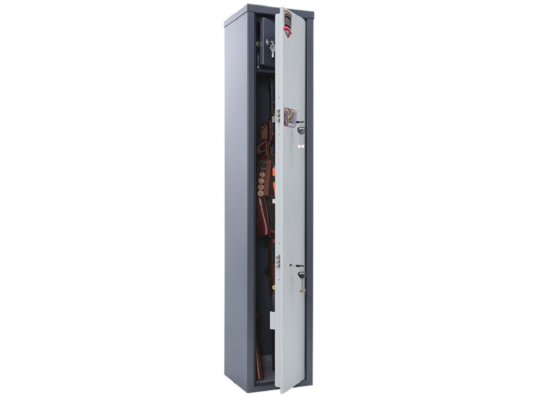 Оружейный сейф AIKO «БЕРКУТ 2» предназначен для хранения огнестрельного оружия и патронов к нему. Сейф с толстыми стенками хорошо справляется со своей задачей, толстые стенки позволят ограничить доступ третьих лиц. Толщина металла корпуса и двери увеличена до 2 мм, соответствует всем требованиям Федерального закона «Об оружии». Толстый металл в совокупности с качественным порошковым покрытием позволит защитить сейф от воздействия окружающей среды, а также повысить прочность по отношению к ударам. Покрытие выдерживает самые разные температуры, особенно оно приспособлено к разным перепадам температуры. Максимальная высота ствола 1150 мм. Укомплектован специальным патронным отделением (трейзер), служащим для хранения патронов, документов особой важности и ценных вещей. Трейзер вынесен отдельно, запирается на ключ. Нейтральный цвет сейфа «Графит структурированный». Анкерные отверстия для крепления сейфа к стене. Есть возможность поставить ложементы для ружья (сами ложементы на магните, покупаются отдельно).