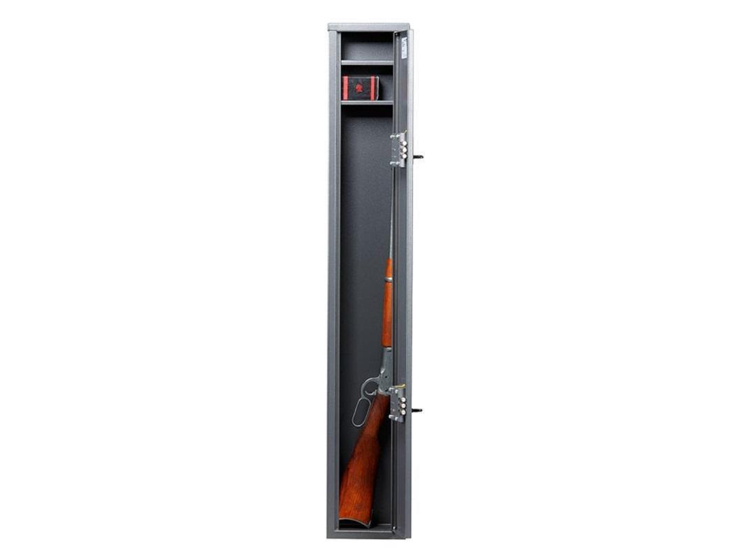 Предназначен для хранения огнестрельного оружия и патронов к нему. Сейф с толстыми стенками хорошо справляется со своей задачей, толстые стенки позволят ограничить доступ третьих лиц. Соответствует всем требованиям Федерального закона «Об оружии». Толстый металл в совокупности с качественным порошковым покрытием позволит защитить сейф от воздействия окружающей среды, а также повысить прочность по отношению к ударам. Покрытие выдерживает самые разные температуры, особенно оно приспособлено к разным перепадам температуры. Две съёмные полки, максимальная высота без полок 1300 мм, с одной полкой 1175 мм, с двумя полками 1050 мм. Нейтральный цвет сейфа «Серый графит». Анкерные отверстия для крепления сейфа к стене. Есть возможность поставить ложементы для ружья (сами ложементы на магните, покупаются отдельно).