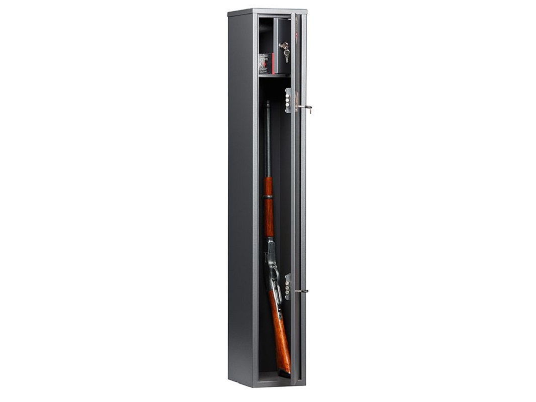 Предназначен для хранения огнестрельного оружия и патронов к нему. Сейф с толстыми стенками хорошо справляется со своей задачей, толстые стенки позволят ограничить доступ третьих лиц. Соответствует всем требованиям Федерального закона «Об оружии». Толстый металл в совокупности с качественным порошковым покрытием позволит защитить сейф от воздействия окружающей среды, а также повысить прочность по отношению к ударам. Покрытие выдерживает самые разные температуры, особенно оно приспособлено к разным перепадам температуры. Максимальная длина ствола 1300 мм. Укомплектован специальным патронным отделением (трейзер), служащим для хранения патронов, документов особой важности и ценных вещей. Усеченный трейзер позволит использовать всю высоту сейфа. Нейтральный цвет сейфа «Серый графит». Анкерные отверстия для крепления сейфа к стене. Есть возможность поставить ложементы для ружья (сами ложементы на магните, покупаются отдельно).