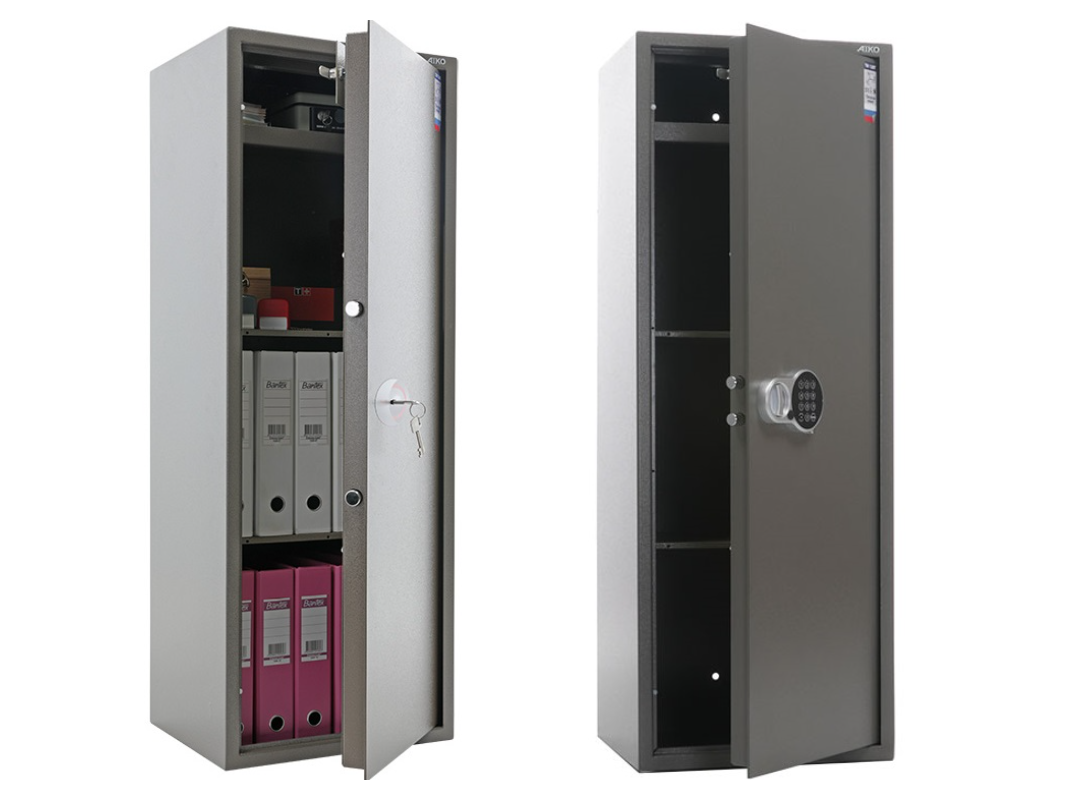 Офисный сейф AIKO TM 120T отличается увеличенными размерами, утолщенная лицевая панель с ригельным замком. Внутри сейфа установлен трейзер, который запирается на отдельный замок.