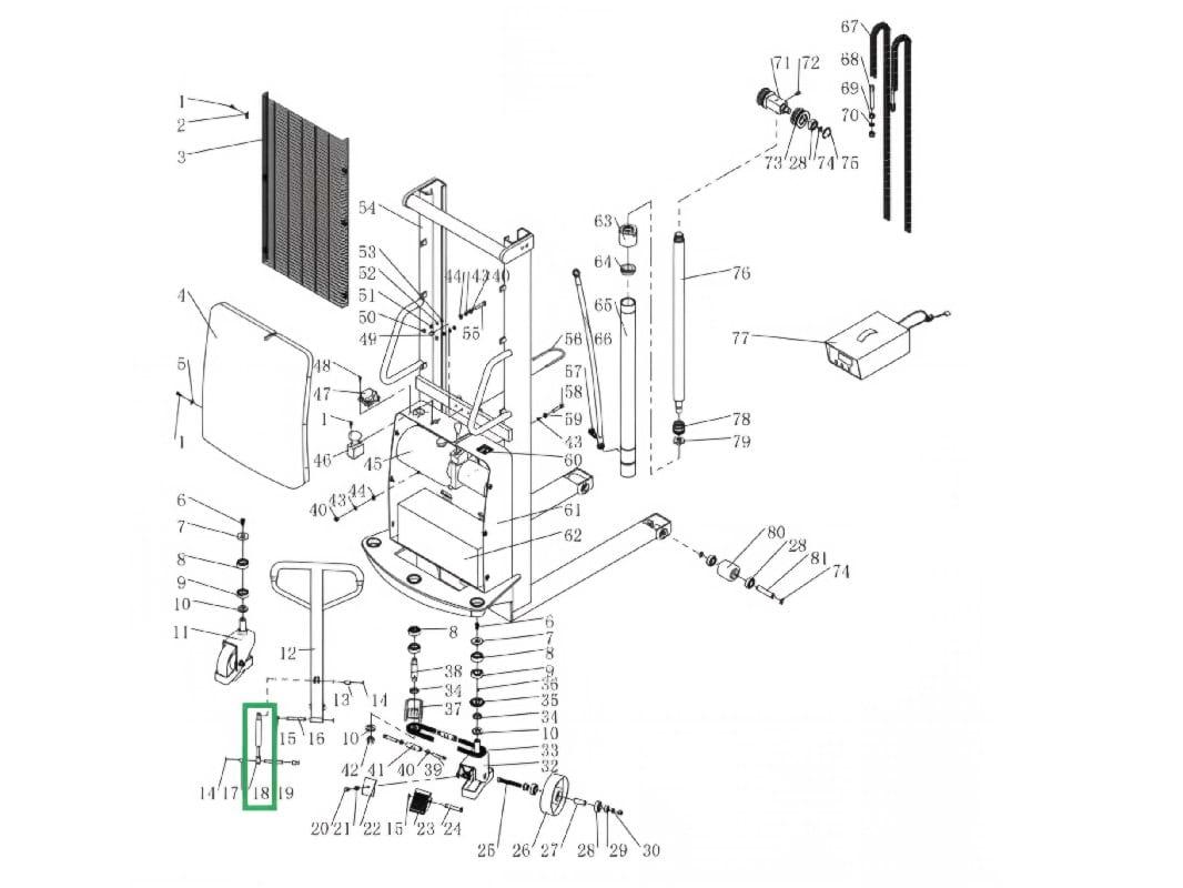 Если проще, с помощью такого амортизатора ручка штабелера с электроподъёмом возвращается в вертикальное положение самостоятельно и плавно, без резких движений. Если во время работы отпустить ручку, она не упадет, а вернется в вертикальное положение самостоятельно. Также для опускания придется приложить небольшое усилие для удержания ручки в нужном вам положении.