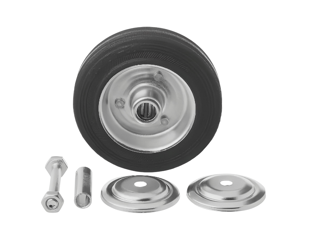 Конструкция включает в себя игольчатый подшипник, уплотнительное кольцо и литую резиновую шинку, которая обеспечивает плавность и мягкость хода. Однако такие колёса менее износостойкие, чем полиуретановые.
