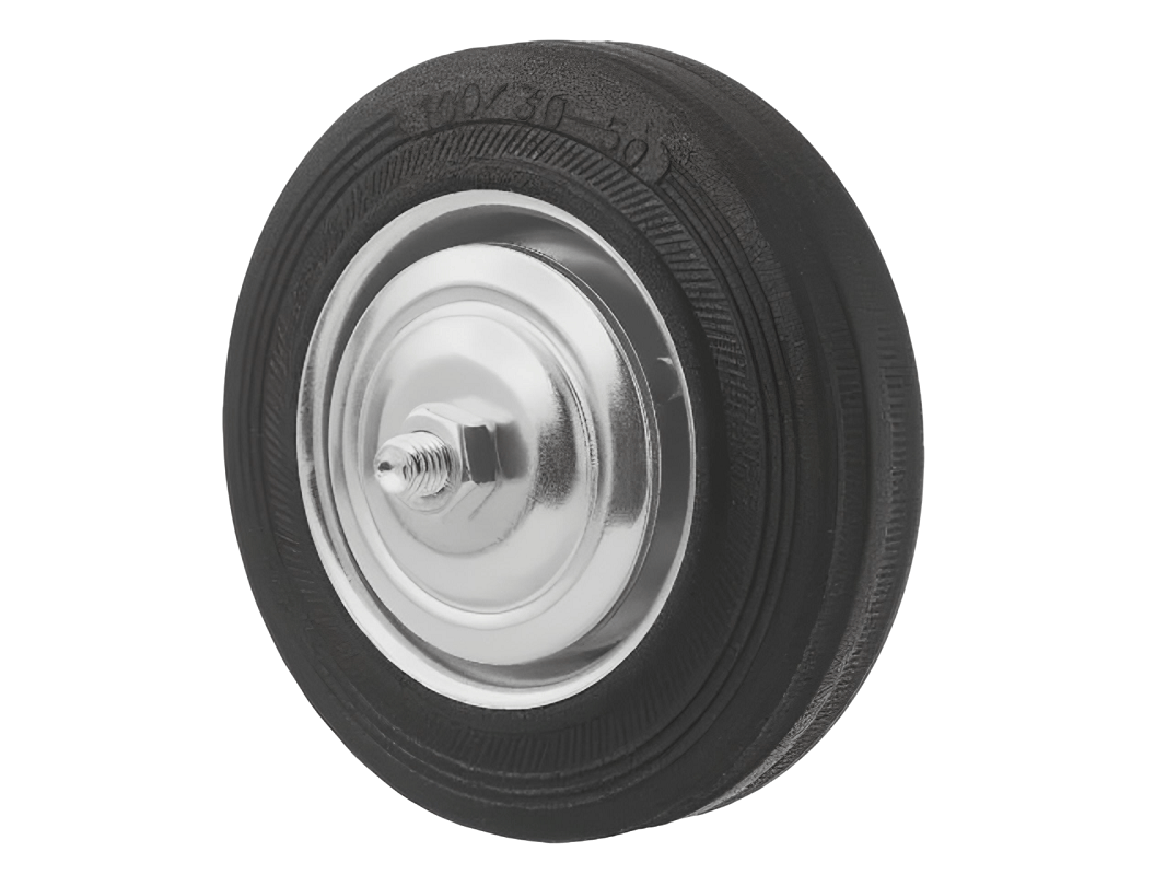 Промышленное колесо без крепления C 46 поставляется в собранном виде. Колесо выдерживает нагрузки до 70 килограмм. Самая распространенная серия колес, отличаются недорогой ценой и универсальностью. Диаметр колеса 100 мм, материал обода выполнен из стали.