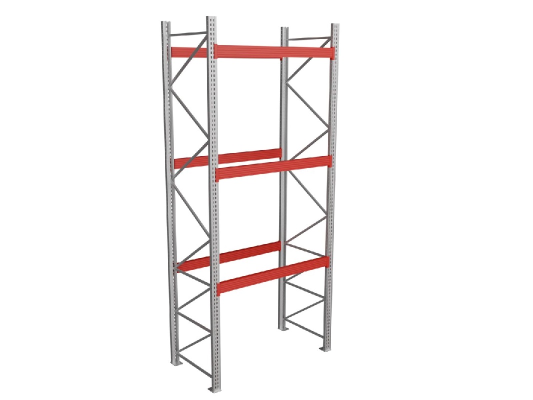 Высоту каждого яруса можно настроить под свои нужды, учитывая размеры товара на поддоне. Чем выше первый ярус, тем ниже максимальная грузоподъёмность и устойчивость стеллажа.