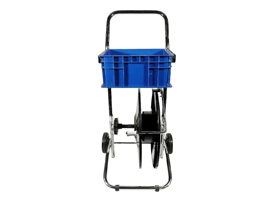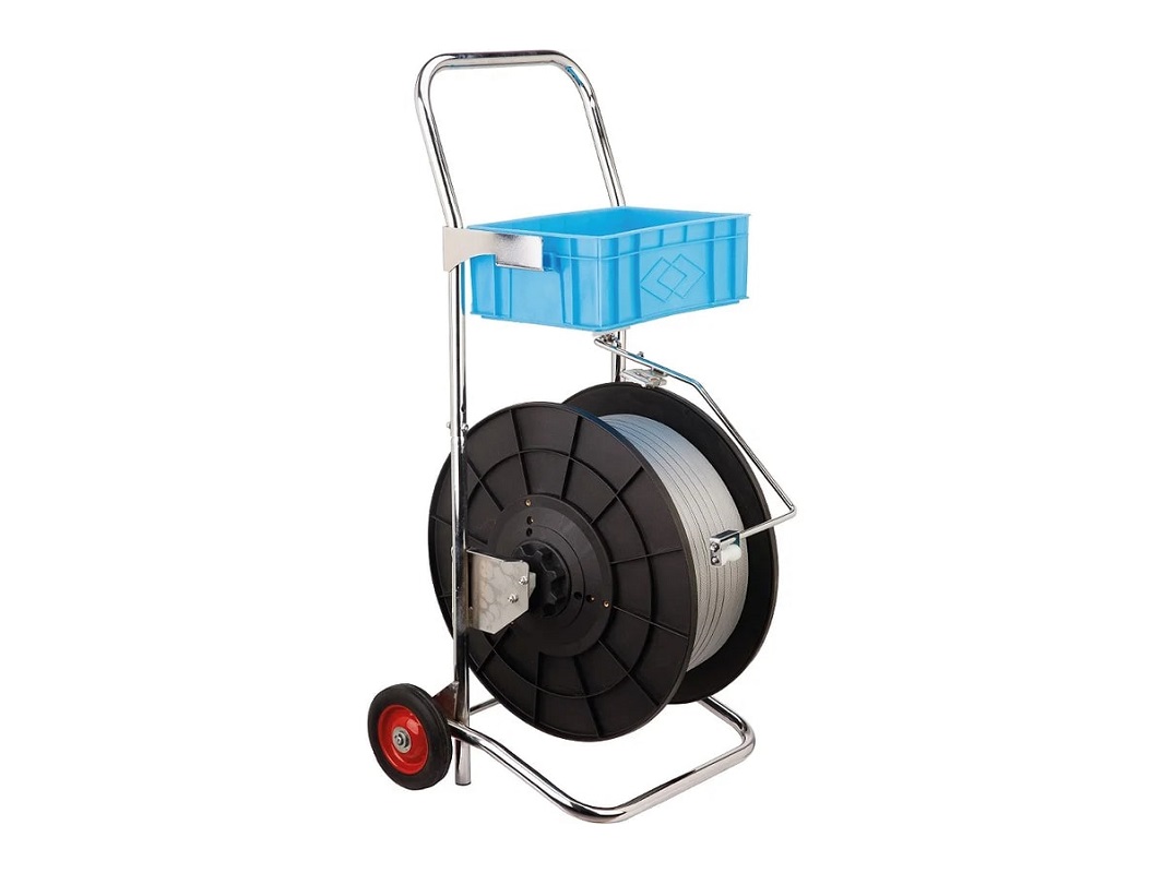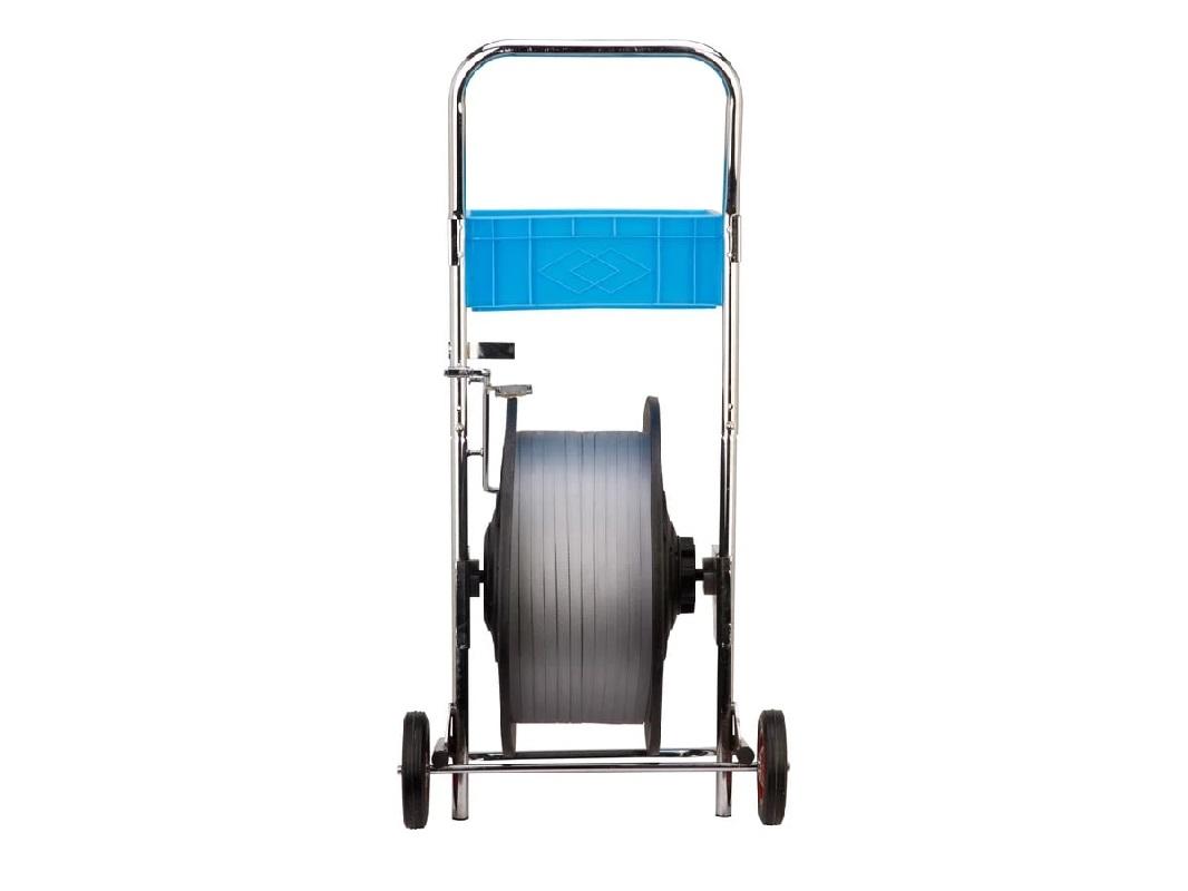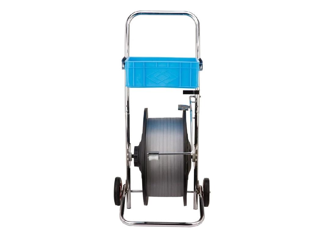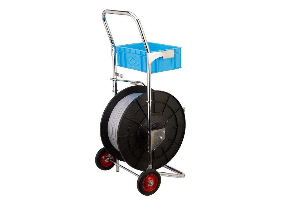 Диспенсер для ленты PP20 используется для перемещения по складу полипропиленовой ленты разной ширины и толщины. Используется минимальная ширина 9 мм, а максимальная 19 мм. В отличие от других моделей имеет уменьшенные габариты и комплектуется литыми колёсами, а не промышленными, как серия TP. Удобный инструмент при больших объёмах работы, колеса позволяют перемещать тележку без особых усилий, металлический ящик предназначен сразу для нескольких инструментов или метизов для обмотки грузов.