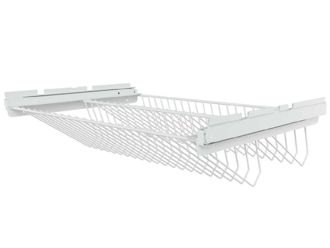 Наборный элемент гардеробной системы. Подходит для хранения различных предметов. Размещается на перфорированной панели, крепится при помощи болта и гайки (входят в комплект). Установка не займет много времени. Изделие можно заказать в двух цветах. Белый идеально впишется в гардеробную систему и станет частью любого интерьера.