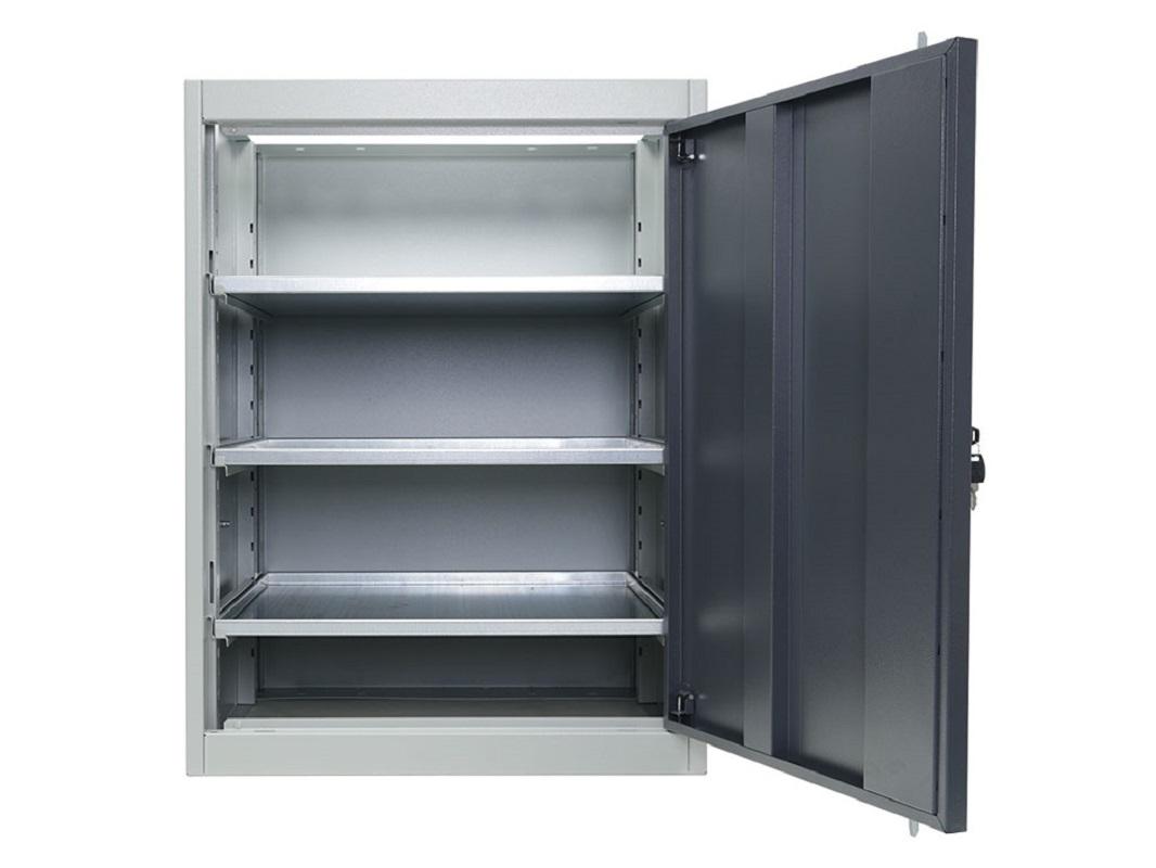 Инструментальная тумба EXPERT T-1 используется в верстаках серии "EXPERT T", служит как опора для столешницы, которая способна выдержать большие нагрузки. В каждой тумбе установлены 2 съёмные полки с максимальной нагрузкой до 240 килограмм. Шаг перфорации 50 мм позволит повесить полку на удобную для вас высоту без использования дополнительного крепления. Сама тумба изготовлена из металла толщиной 1,5 мм.