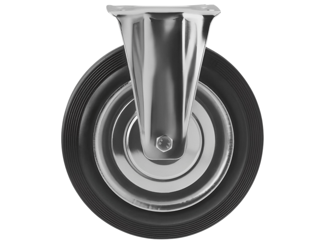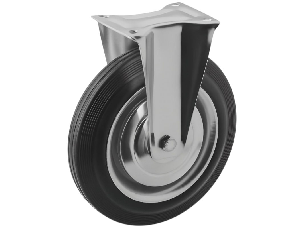 Эта модель неповоротных колёс с креплением доступна в семи вариантах, отличающихся диаметром от 75 до 250 мм, и грузоподъёмностью от 50 до 210 кг.