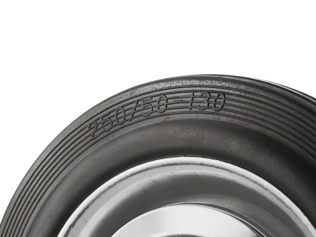 Конструкция этих колёс включает роликовый подшипник, стальной обод и шинку из чёрной резины, обеспечивающую плавность и мягкость хода. Однако они менее износостойкие, чем полиуретановые колёса.