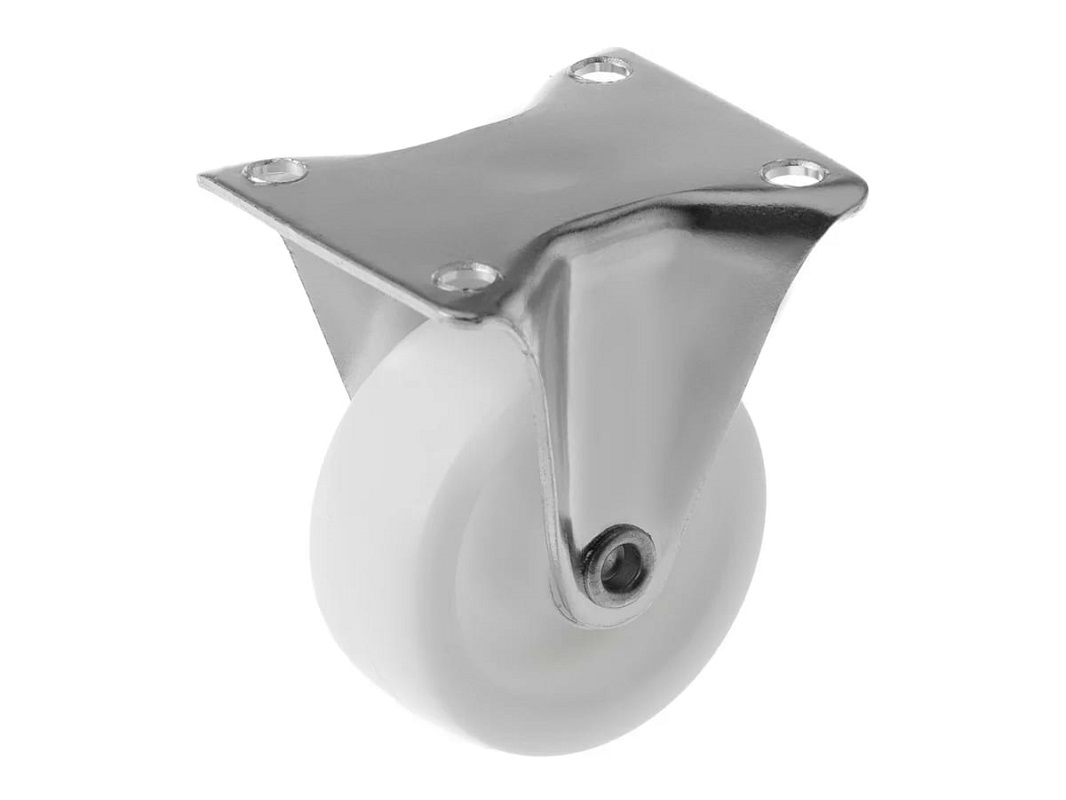 Колесо мебельное полипропиленовое с неповоротной площадкой FCpp 25 (50 мм/30 кг) подходит для установки на тумбочки, столики, кресла, пуфики и т. п. Небольшой размер и нейтральный дизайн придаёт аккуратный вид мебели, а полиэтиленовое покрытие исключает нежелательное скольжение, повышенная устойчивость к коррозии.