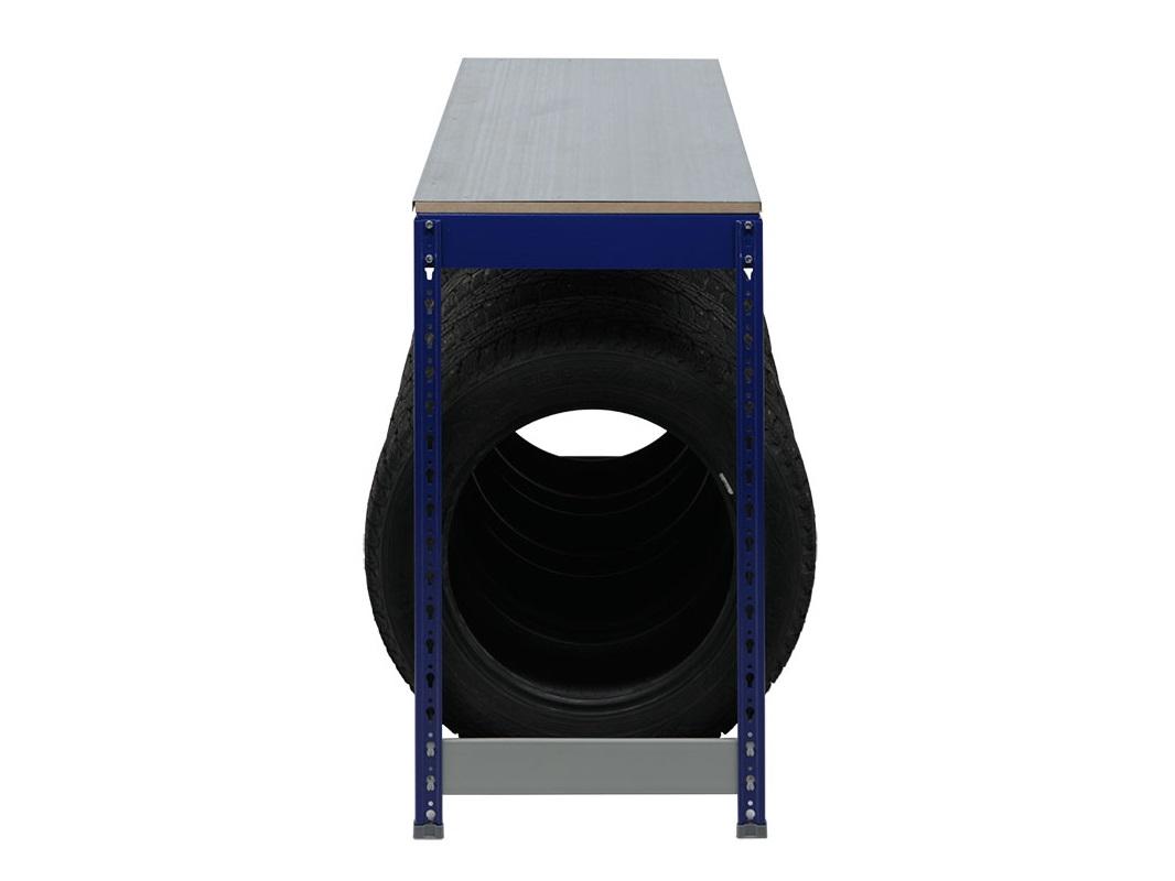 Зачастую это перфорированный экран (плоскость, на которую крепят крючки и держатели для инструментов), комплект освещения, упоры, тиски, полки и ящики. Верстак выдерживает нагрузки до 300 килограмм. Столешница изготовлена из МДФ 16 мм с оцинкованным листом металла толщиной 1,2 мм, столешница выдерживает нагрузку до 100 килограмм. Верстак имеет нестандартные габариты, на один ярус можно разместить колёса шириной 225 мм.