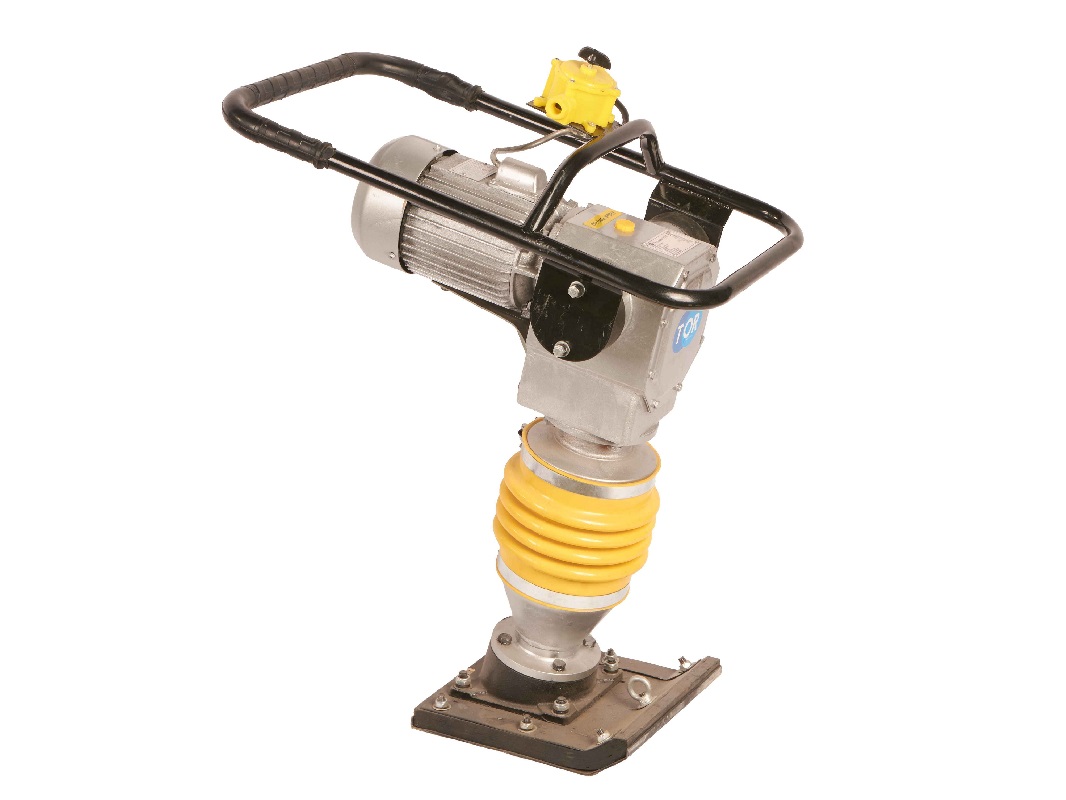Электрическая техника отличается от бензиновой, своей простотой в обслуживании и более низким уровнем шума. Вибротрамбовка используется для трамбовки грунта вокруг колон, свай, труб а так же в углах, траншеях где не может работать большая техника. Имеет амплитуду прыжков 40-55 мм с частотой ударов 450-550 в минут. Имеет габариты, которые не превышают 665х410х870 мм.