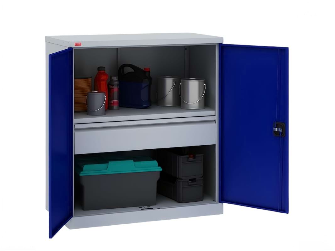 Также этот шкаф способствует систематизации и правильному хранению различных материалов и предметов благодаря наличию специальных ящиков и крючков, обеспечивая безопасное размещение. Его конструкция минимизирует риск контакта с опасными предметами. Можно настроить шкаф под свои нужды, выбрав необходимые компоненты и их расположение. Порошково-полимерное покрытие делает шкаф износостойким и сохраняет его презентабельный внешний вид на длительный срок. Отличается более простой комплектацией по сравнению с другими готовыми моделями.