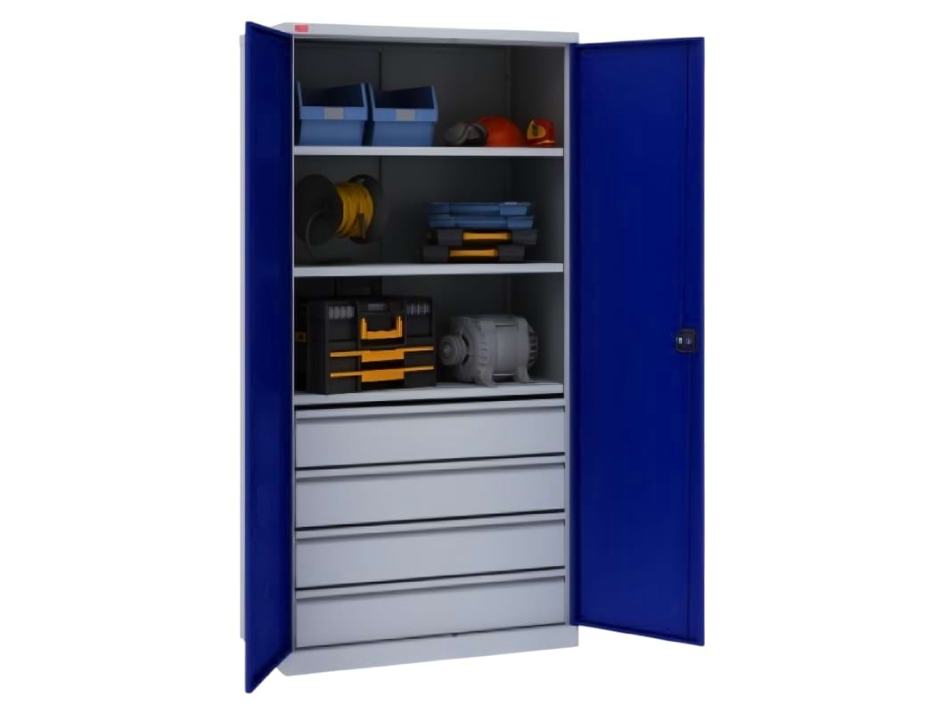Они также способствуют организации и правильному хранению материалов и предметов. Внутри есть специальные ящики и крючки, обеспечивающие безопасное размещение инструментов и других объектов. Конструкция предотвращает нежелательный контакт с опасными предметами. Вы можете настроить шкаф под свои нужды, выбирая необходимые комплектующие и их расположение. Он вместительный, имеет стандартные размеры и износостойкое полимерно-порошковое покрытие, которое сохраняет его внешний вид на долгое время.