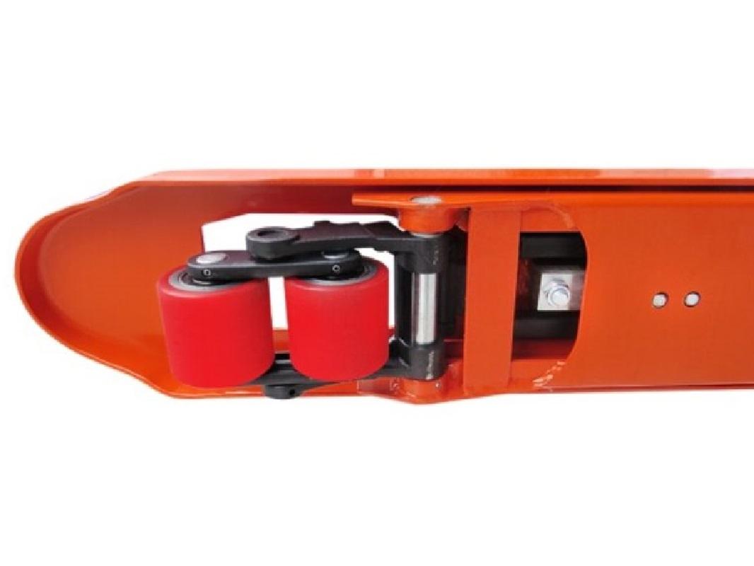 Наличие весов позволяет экономить пространство, время и подбирать грузы для транспортировки по массе. Корпус выполнен из прочной стали, а вилы оснащены роликами, что обеспечивает комфортную работу даже на небольших неровностях пола. Удобная ручка имеет покрытие, устойчивое к низким температурам, что делает использование тележки удобным в любое время года.