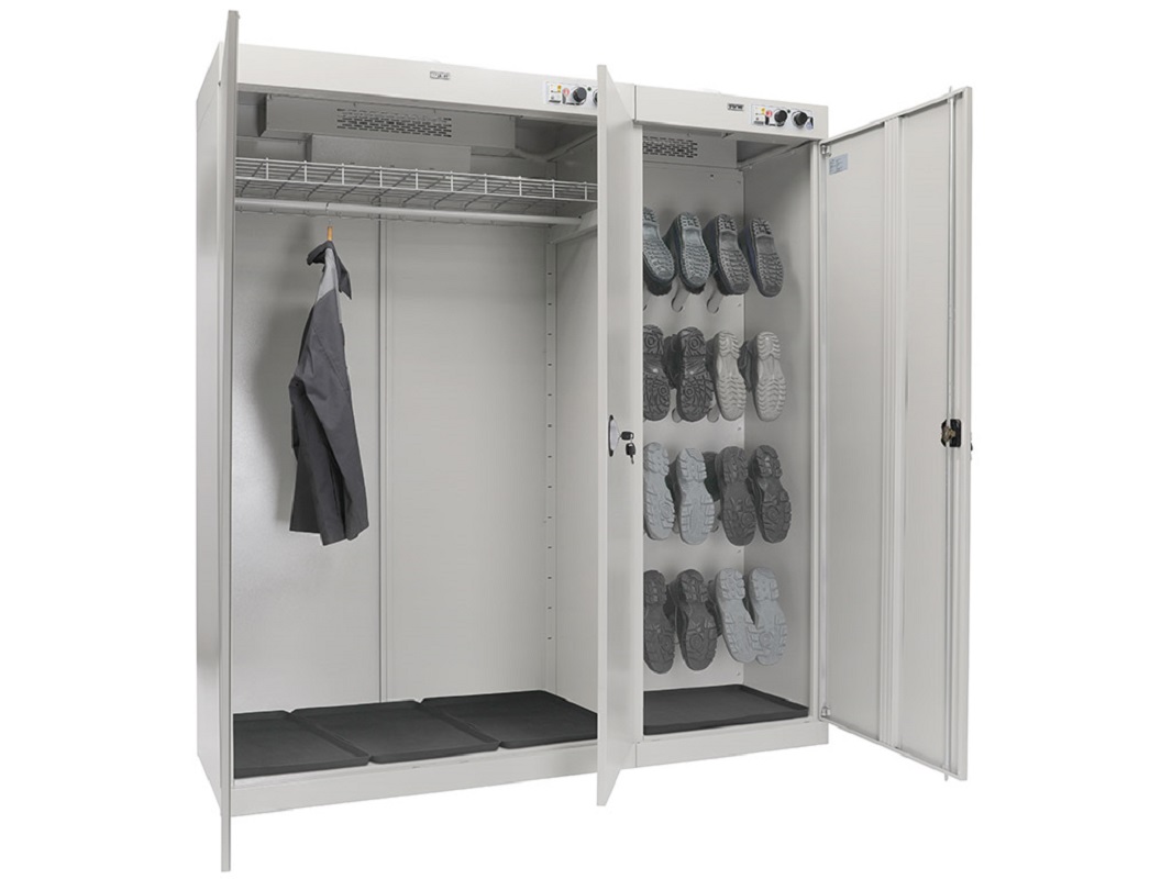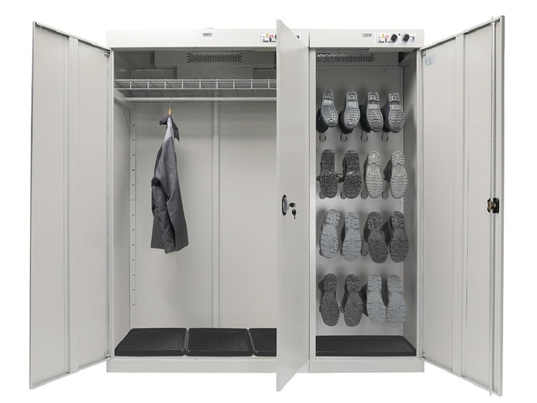 Сушильный шкаф ШС «Сахара 8» — это профессиональное оборудование, предназначенное для сушки формы целой группы персонала до 8 человек. Сам шкаф прошел все необходимые проверки и тесты в суровых условиях и обладает повышенными характеристиками сушки одежды и обуви. Чаще всего такие шкафы используются на больших предприятиях, на буровых и нефтяных станциях, военизированных подразделениях (МО, МВД, МЧС) и ледовых дворцах. Состоит из двух секций, каждая управляется двумя регуляторами. Первая двухдверная для одежды, с перекладиной для вешалок и полкой. Вторая — для сушки обуви, оборудована патрубками для развешивания. Инерционный клапан на каждом патрубке перекрывает подачу воздуха, если обувь не надета. Нагрузка на переставную полку для касок и перчаток до 10 кг, нагрузка на одежную перекладину до 50 кг. Поддоны выполнены из жаропрочной резины (в комплекте 4 штуки).
