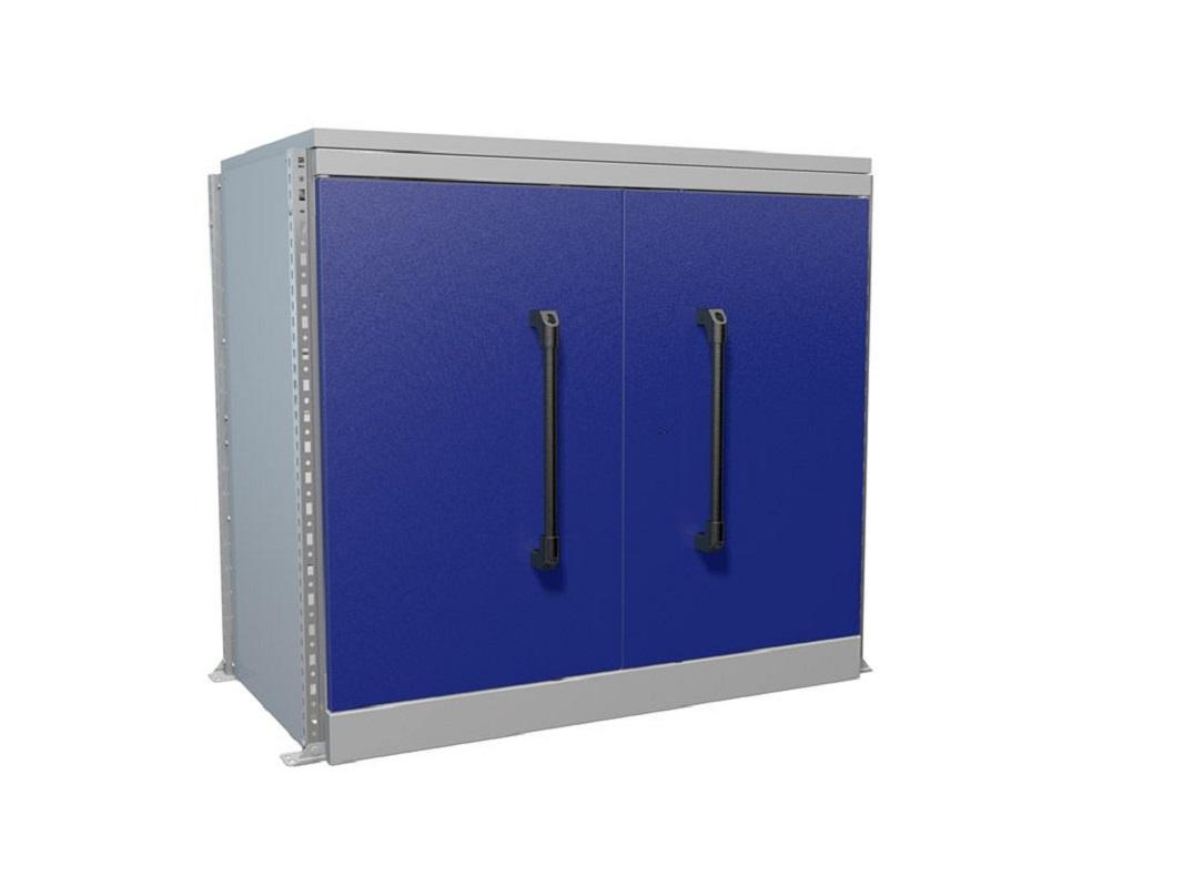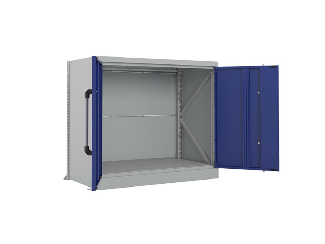 Модульный инструментальный шкаф HARD 1000-000000 предназначен для хранения инструментов, оснастки, тяжелых грузов на производственных площадках. Сама конструкция состоит из двух рам HARD грузового стеллажа. Дверь изготовлена из толстой стали в 1 мм. В отличие от других шкафов, в этом используется 2-сторонняя ригельная система запирания с ключевым замком Kaba Mauer. Способен выдержать нагрузки до 1000 килограмм, полки изготовлены из оцинкованной стали толщиной в 1,5 мм с максимальной нагрузкой до 400 килограмм.