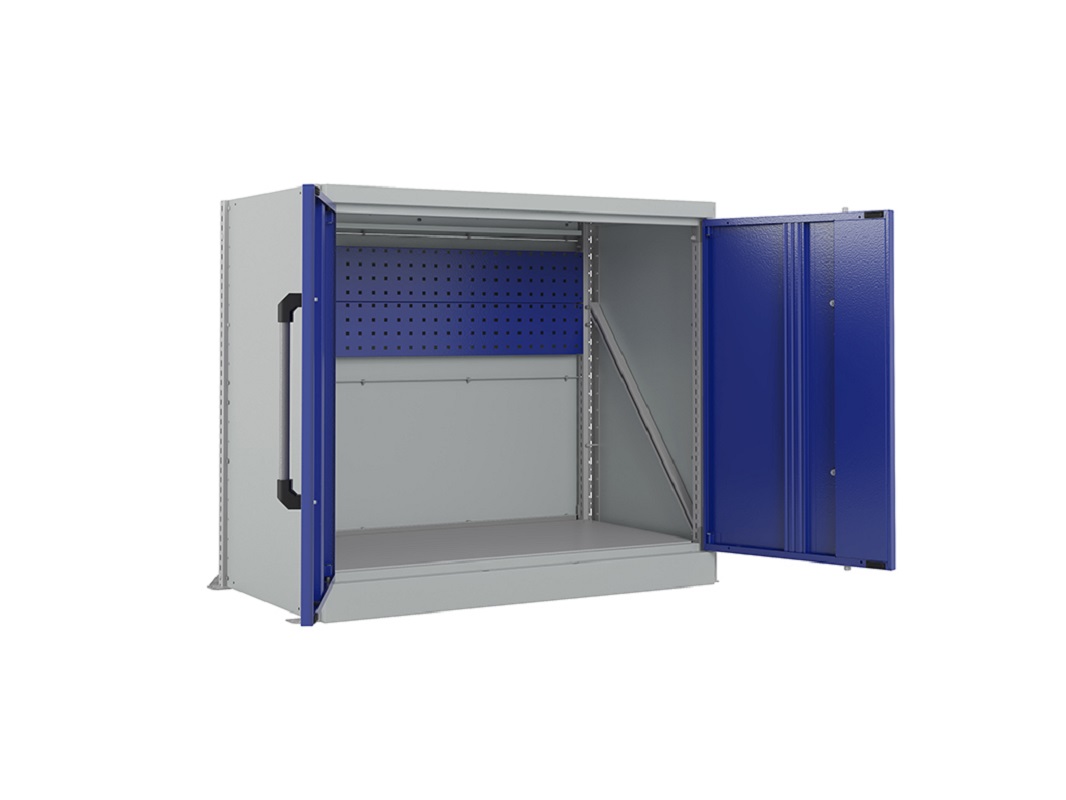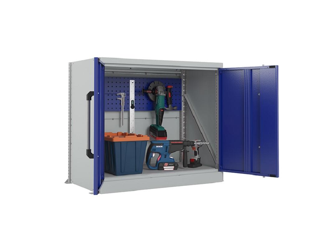 Модульный инструментальный шкаф HARD 1000-020000 предназначен для хранения инструментов, оснастки, тяжелых грузов на производственных площадках. Сама конструкция шкафа состоит из двух рам HARD грузового стеллажа. Дверь изготовлена из толстой стали в 1 мм. В отличие от других шкафов, в этом используется 2-сторонняя ригельная система запирания с ключевым замком Kaba Mauer. Шкаф способен выдержать нагрузки до 1000 килограмм, полки изготовлены из оцинкованной стали толщиной в 1,5 мм с максимальной нагрузкой до 400 килограмм.