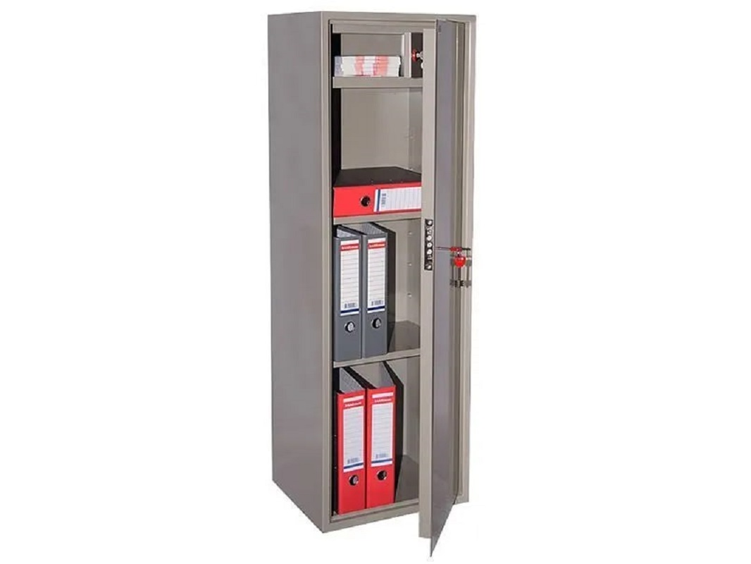 Металлический бухгалтерский шкаф КБС-021ТН предназначен для хранения юридических документов, отчетов; печатей предприятия; партнерских контрактов, денежных средств. В зависимости от важности содержимого их оснащают ключевыми или кодовыми замками. Уже давно, наравне с деревянными шкафами, можно встретить металлические. Имеет немного нестандартные размеры, при выборе обратите на это особое внимание. В комплект входит две съемные полки, для хранения более важных документов оснащён трейзером. Это дополнительный отсек, который закрывается на свой замок и находится внутри шкафа.