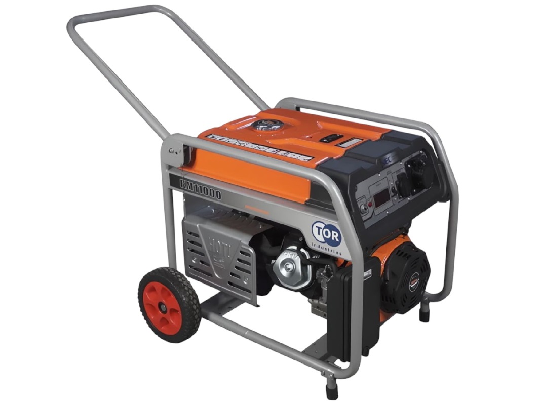 Генератор бензиновый TOR KM13000H 9 кВт 220В 26 л с кнопкой запуска и колёсами — это простой и мощный генератор, способный обеспечить большой дом, дачу, склад, магазин, офис или помещение стабильным током в 220 В. Способен работать до 12 часов, очень большой и вместительный бак на 33 литра. Отличается своими габаритами, мобильное оборудование с весом около 100 килограмм.