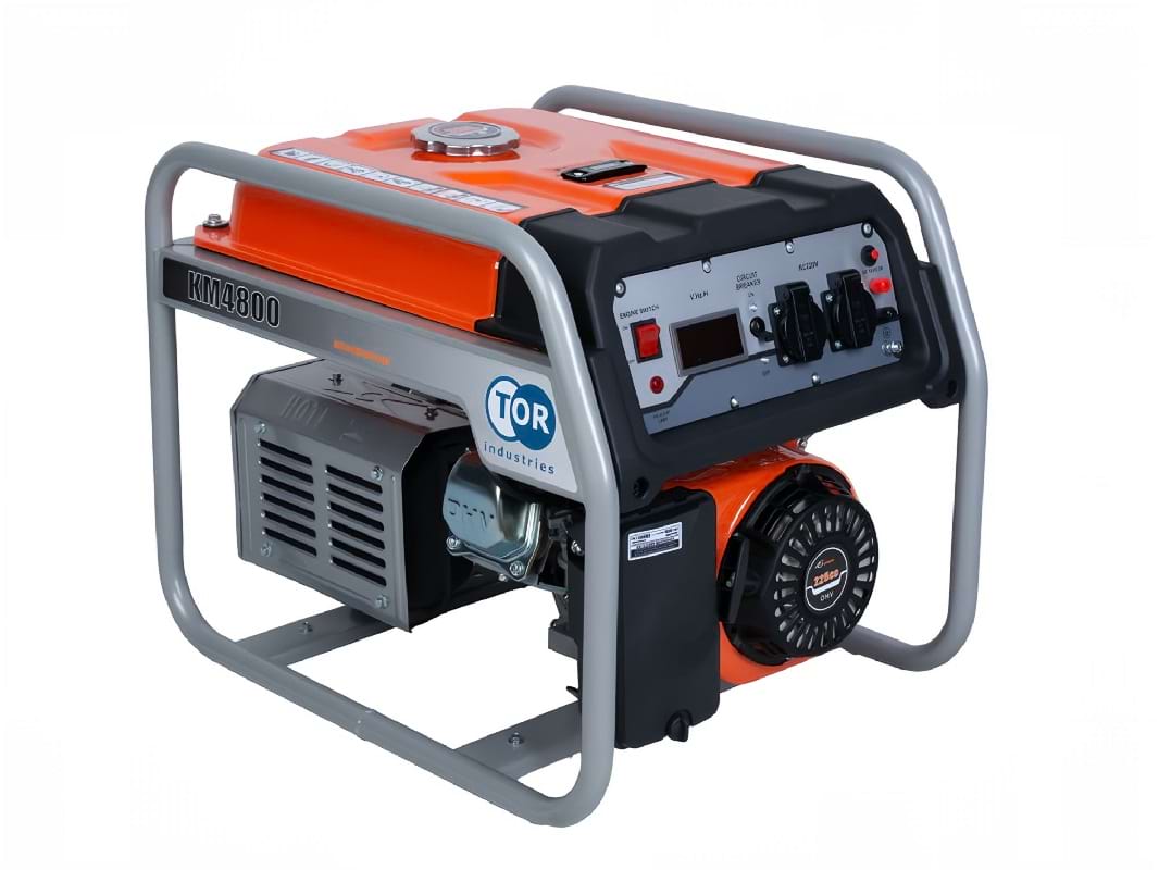 Генератор бензиновый TOR KM4800H 3.3 кВт 220В 16 л с ручным запуском — это простой и небольшой генератор, способный обеспечить небольшой дом, дачу или помещение стабильным током в 220 В. Способен работать до 10 часов, очень большой и вместительный бак на 16 литров.