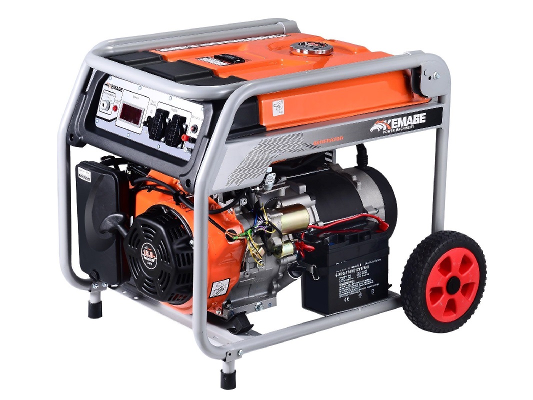 Генератор бензиновый TOR KM8000H 6 кВт 220В 27 л с кнопкой запуска и колёсами — это простой и мощный генератор, способный обеспечить большой дом, дачу, склад, магазин, офис или помещение стабильным током в 220 В. Способен работать до 9 часов, очень большой и вместительный бак на 27 литров. Отличается своими габаритами, мобильное оборудование с весом около 76 килограмм.
