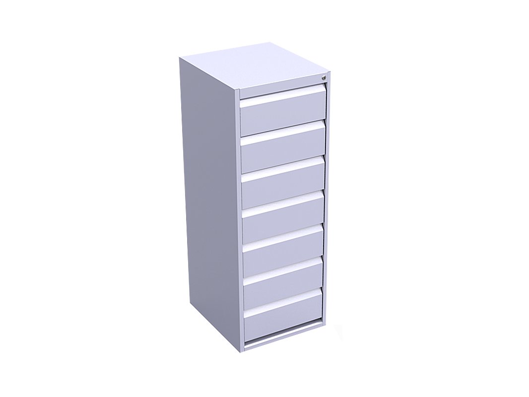 Картотека KO-71.2T используется для хранения документов в подвесных папках, общая вместимость 2100 документов А5, 4200 формата А6. Комплектуется семью выдвижными ящиками с системой полного выдвижения и телескопическими направляющими, размер каждого 180х210х540 мм. Максимальная нагрузка на один ящик не должна превышать 20 килограмм, система опрокидывания не позволит вам выдвинуть более одного ящика за раз.