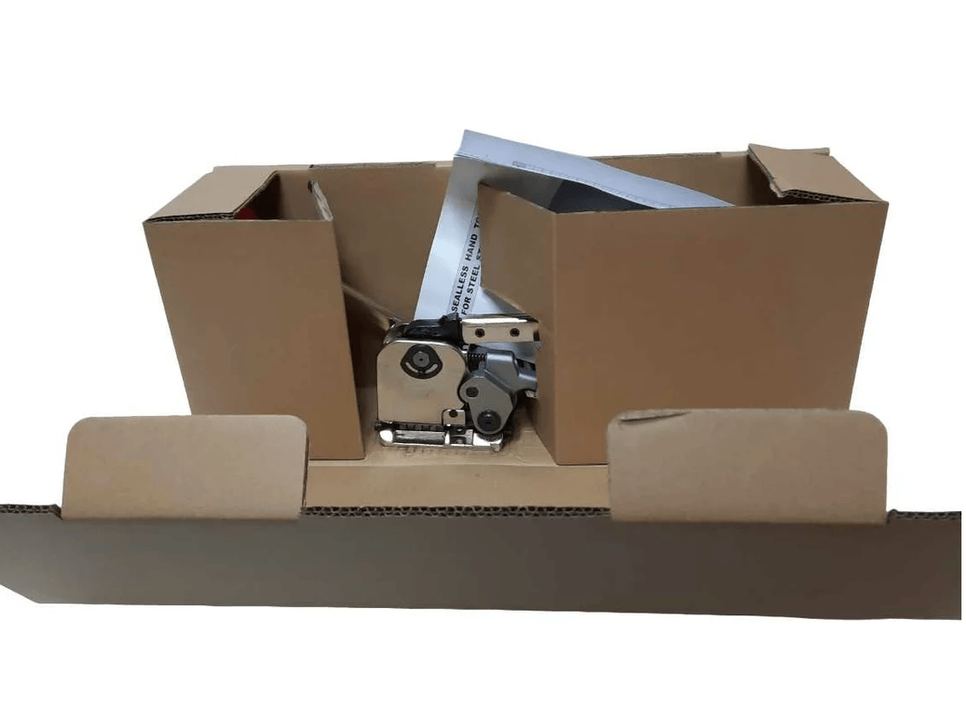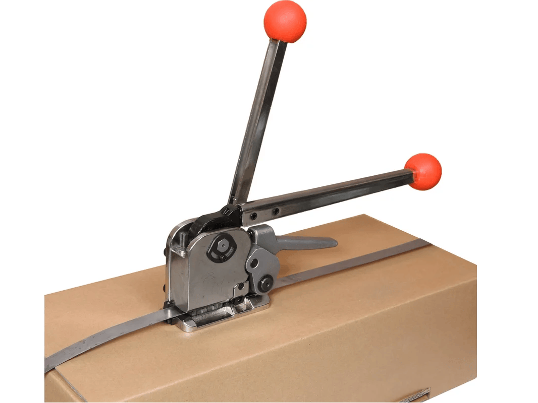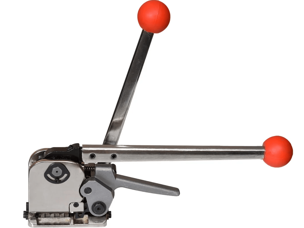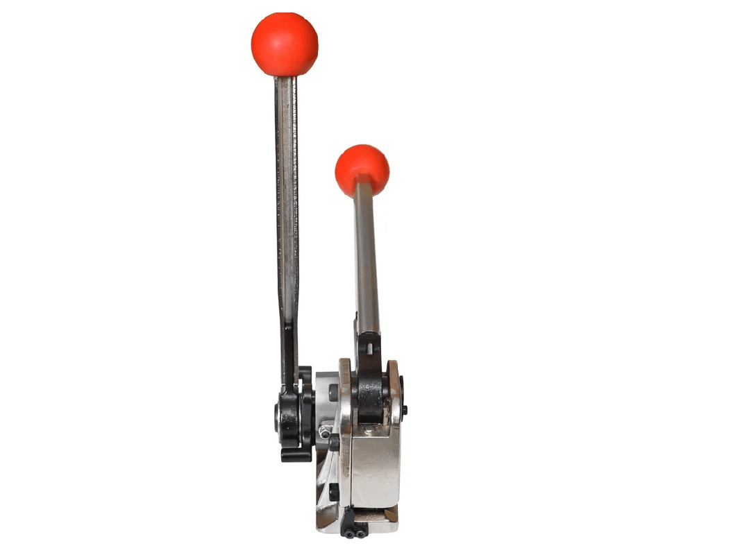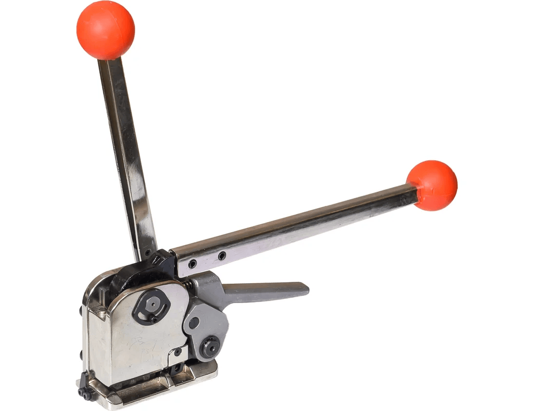 Большая сила натяжения в 8000H, конструкция состоит блока натяжения, блока скрепления и блока резки ленты. Универсальный инструмент со способом крепления — просечка. Оборудование отличается высоким качеством и надежностью. Ручной инструмент служит намного дольше автоматического и не требует дополнительного ухода (зарядки, обеспечения хранения в теплом месте и т. д.). Удобное управление за счет регулируемых блоков натяжения и скрепления.