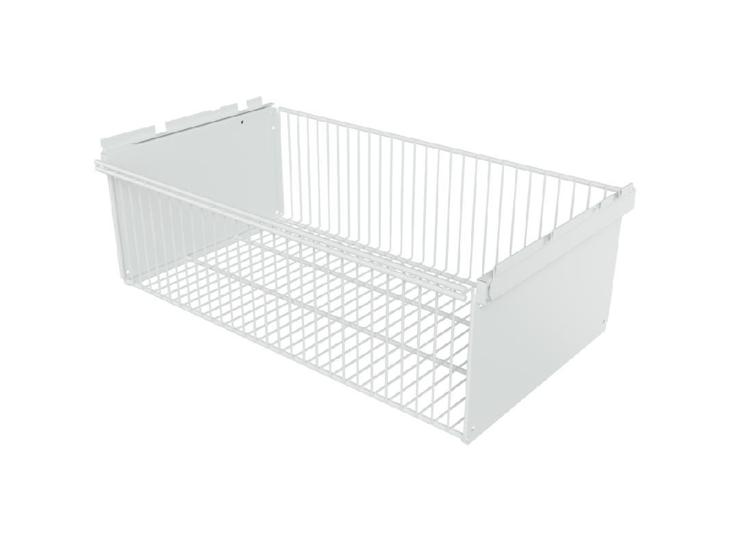 Выдвижная корзина для гардеробной системы не только обеспечивает свободный доступ к содержимому, но и позволяет сберечь свежесть вещей при полной загруженности шкафа. Выдвигается очень плавно, мягко и бесшумно.