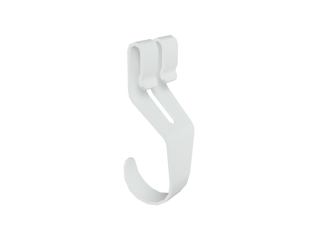 Простая конструкция позволяет легко и просто крепить крючок, перемещать для своего удобства. Лаконичный дизайн впишет данный элемент в любой интерьер. Для удобства использования гардеробной системы, можно дополнить ее другими наборными элементами, например, корзинами, разделителями для корзин, металлическими перекладинами для вешалок и т.д.
