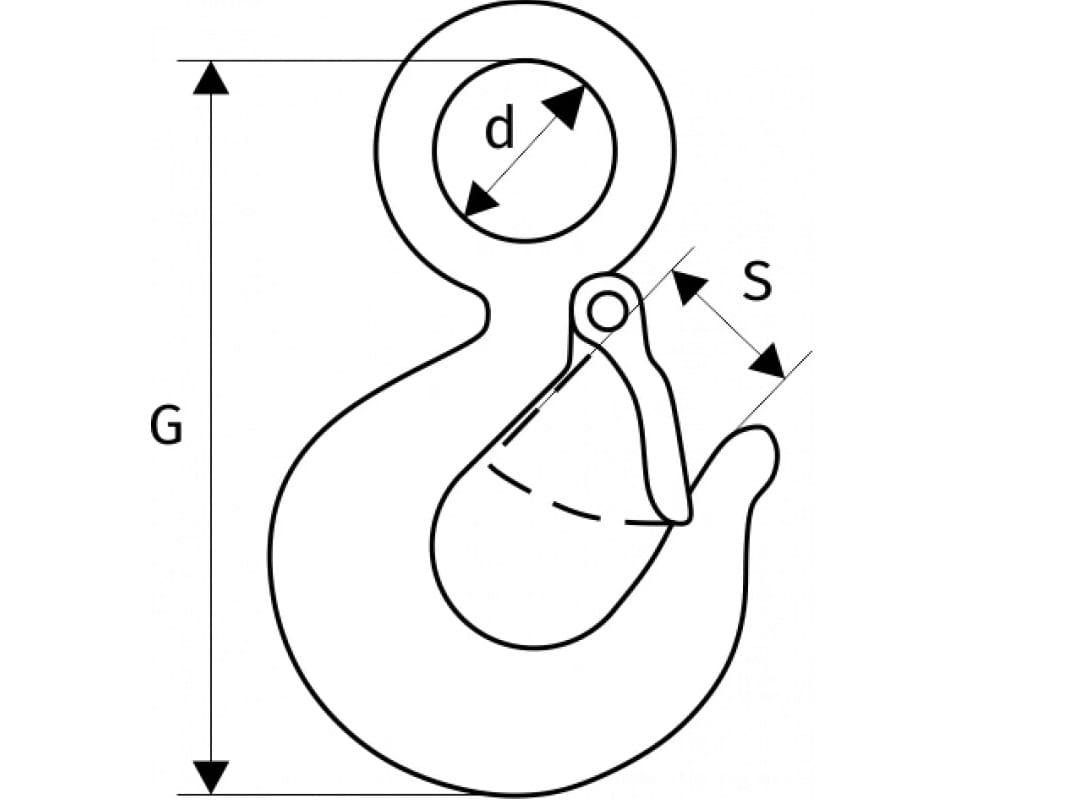Крюк чалочный 320А с защелкой предназначен специально для безопасного крепления и подъёма различных грузов с использованием канатных строп.