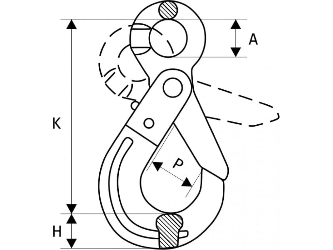 Крюк оснащен специальной защелкой, которая автоматически закрывается сразу после установки цепи или груза, предотвращая случайное открывание и падение груза.