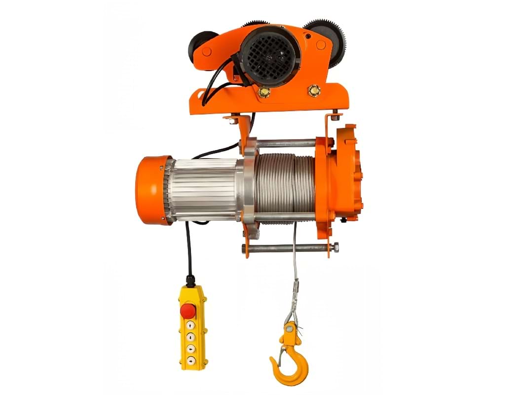 Электрическая лебедка состоит из электродвигателя, редуктора, тормоза, барабанного механизма, стального троса, крюковой подвески и системы запуска. Мотор приводит в движение подъемный механизм. Все компоненты работают от однофазной сети переменного тока с напряжением 220 В. Управлять лебедкой можно с помощью дистанционного пульта. Горизонтальное перемещение осуществляется по двутавровой балке с помощью подвесной электрической тележки.