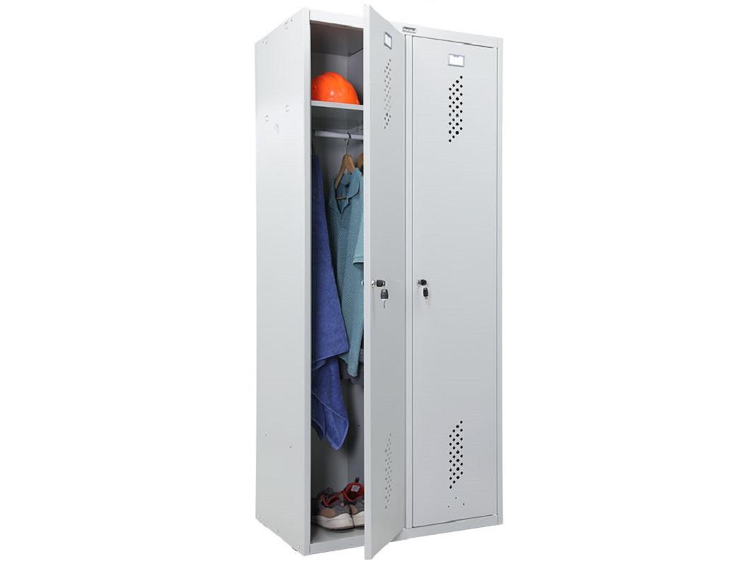 Двухсекционный металлический шкаф Практик LS-21-80 выделяется своими размерами. Его ширина увеличена до 400 мм в каждом отсеке, что позволяет хранить даже крупные предметы и уборочный инвентарь. Металлические шкафы (локеры) давно используются для эргономичного хранения и применяются в различных сферах. Их можно увидеть в раздевалках спортивных и производственных помещений, а также в камерах хранения.