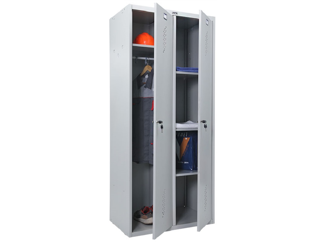Двухсекционный металлический шкаф Практик LS-21-80U подходит для одного человека, одна секция для хранения длинных и габаритных вещей. Вторая секция оснащена полками для удобного размещения вещей. Уже давно и повсеместно используются металлические шкафы (локеры) для организации эргономичного хранения, такие шкафы часто используются в разных сферах деятельности. Их можно встретить в раздевалках разных спортивных и производственных помещениях, а также для организации камер хранения.
