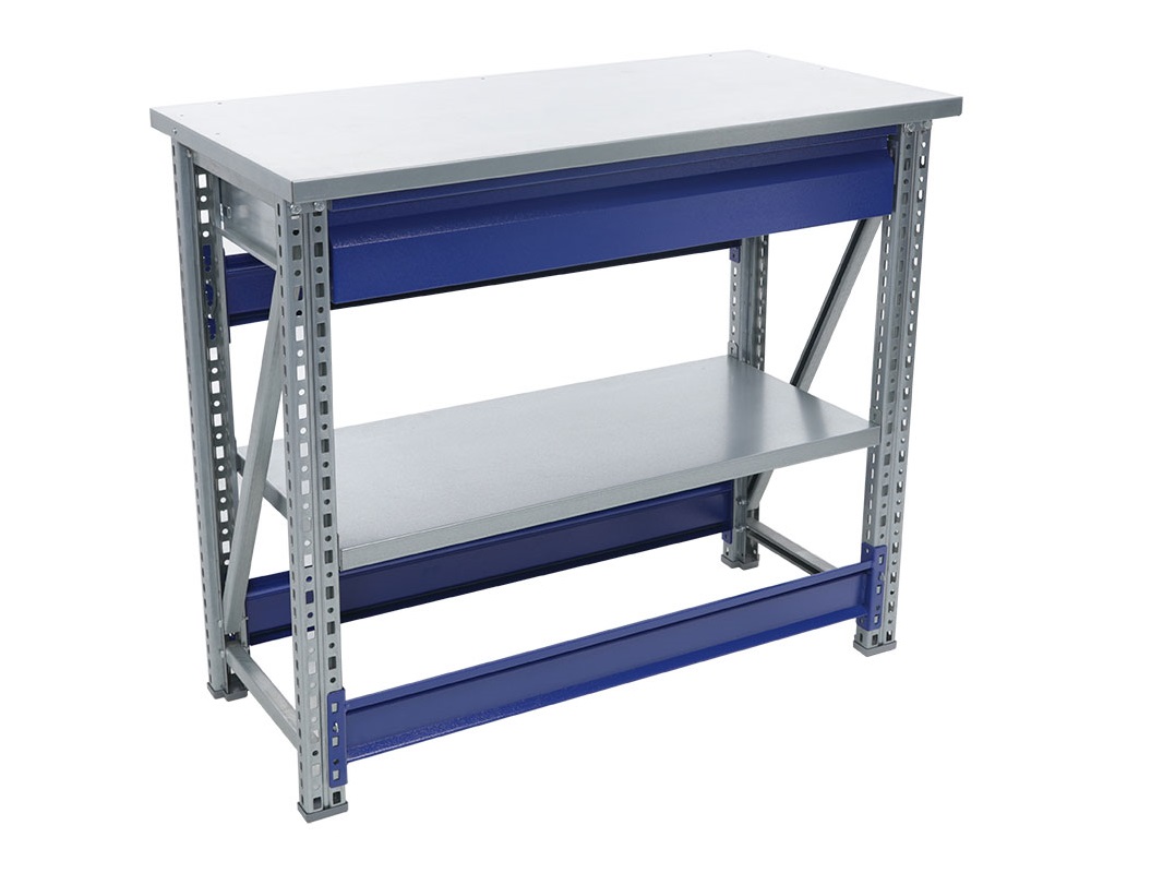 Верстак гаражного типа Master (№ 104) MT100.MF1/MF1.101 предназначен для комфортной организации рабочего места за счет простой и универсальной сборки. Используется для ручной обработки деталей и заготовок. Чаще всего его оборудуют дополнительными приспособлениями, которые делают эксплуатацию еще удобнее, их можно найти в общем каталоге. Выдвижной ящик позволит хранить небольшие инструменты, а полку по середине можно использовать как второй стол.