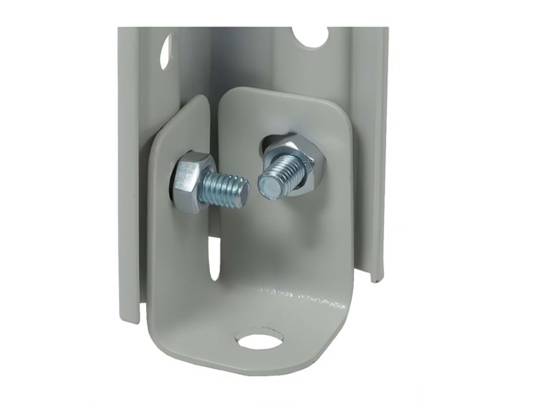 Для крепления к стойке используются два болта и гайки. Чтобы выровнять стеллаж, можно установить регулируемую опору (в комплект не входит).