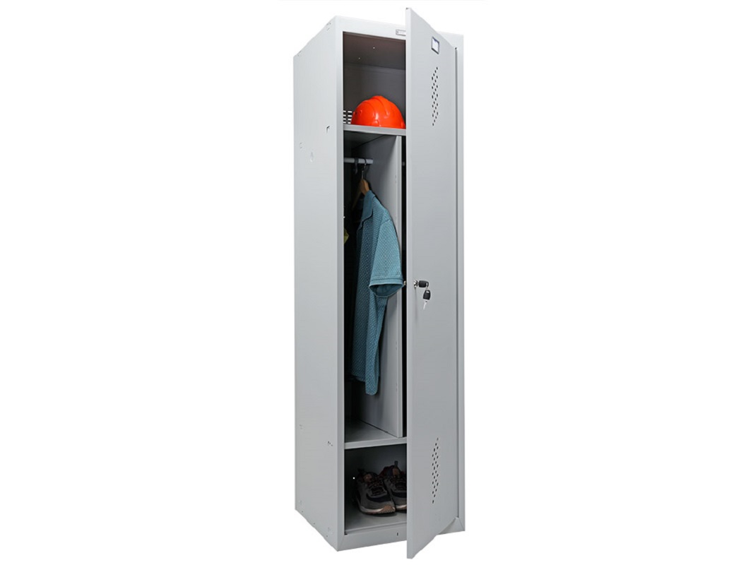 Односекционный усиленный металлический шкаф ML 11-50D — шкаф предназначен для хранения разной одежды. Отличительной чертой является жесткий корпус за счет усиленной сварной рамы. Простая и быстрая сборка при помощи зацепов, саморезов и винтов. В конструкции шкафа используется качественный ключевой замок от компании «Промет» на 2000 комбинаций. Оказываем услуги по сборке и установке.