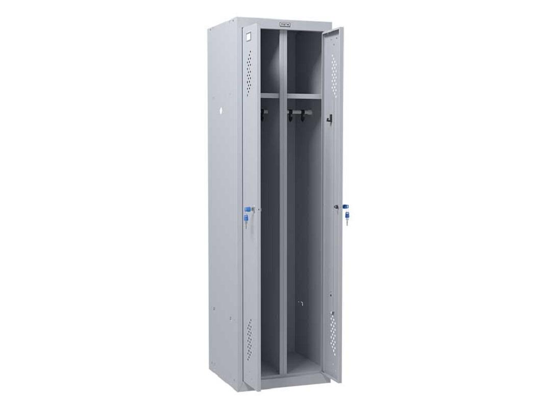 Двухсекционные металлические шкафы Практик ML 21-50 давно стали стандартом для организации эргономичного хранения. Их используют в раздевалках спортивных и производственных помещений, а также для камер хранения.