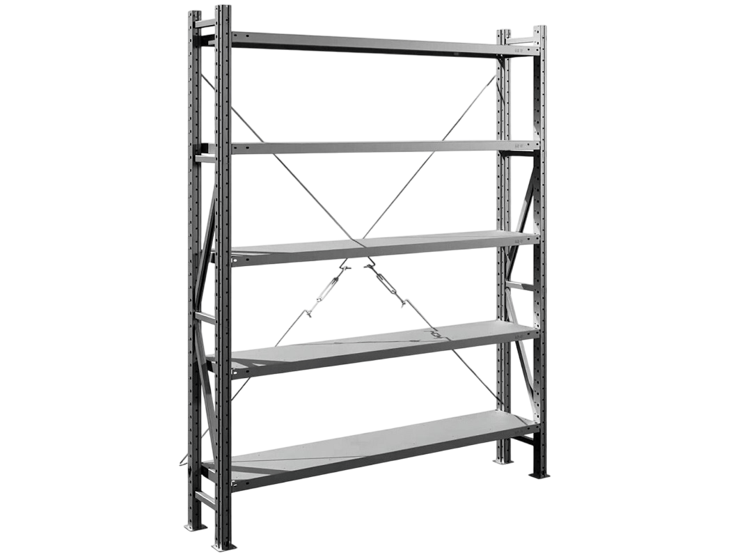Стеллаж среднегрузовой MS U с высотой 2000 мм и полками длиной 1500 мм. Глубина стеллажа 300 мм с максимальной нагрузкой на уровень не более 150 килограмм. Максимальная нагрузка на всю секцию не более 1000 килограмм, при использовании дополнительных комплектов раскосов максимальная нагрузка на одиночную секцию увеличивается до 2000 килограмм. Для такой серии стеллажей минимальное количество полок с высотой до 2 метров составляет 3 штуки, с высотой более 2 метров минимальное количество полок 4 штуки. Допускается установка нижнего яруса не выше 130 мм от пола, с максимальным расстоянием между полками не более 700 мм. Для обеспечения устойчивости стеллаж необходимо крепить к полу с помощью анкерных болтов, минимальная длина должна 100 мм.