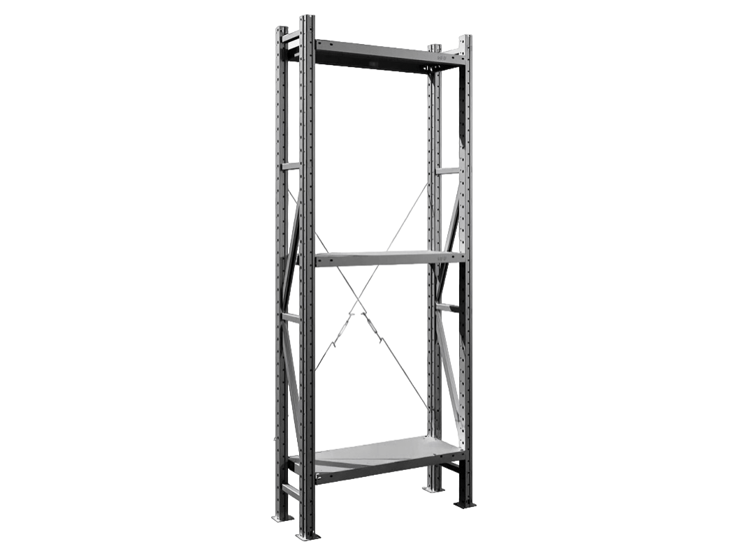 Стеллаж среднегрузовой MS U с высотой 2000 мм и полками длиной 700 мм. Глубина стеллажа 300 мм с максимальной нагрузкой на уровень не более 200 килограмм. Максимальная нагрузка на всю секцию не более 1000 килограмм, при использовании дополнительных комплектов раскосов максимальная нагрузка на одиночную секцию увеличивается до 2000 килограмм. Для такой серии стеллажей минимальное количество полок с высотой до 2 метров составляет 3 штуки, с высотой более 2 метров минимальное количество полок 4 штуки. Допускается установка нижнего яруса не выше 130 мм от пола, с максимальным расстоянием между полками не более 700 мм. Для обеспечения устойчивости стеллаж необходимо крепить к полу с помощью анкерных болтов, минимальная длина должна 100 мм.