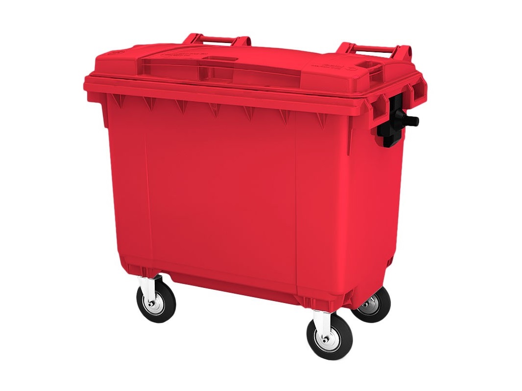 Мусорные контейнеры устанавливаются повсюду, предназначены для сбора мусора и дальнейшего его вывоза. Пластиковые мусорные контейнеры выполнены из полиэтилена низкого давления высокой плотности (HDPE — ПНД). Технология низкого давления отличается очень высокой прочностью, но менее пластичностью в отличие от обычного. Меньшая прозрачность, высокая устойчивость к влаге и химическим элементам. При низкой температуре склонен к деформации. Такие мусорные баки подходят для использования в более теплых помещениях. Мусорный контейнер MKA-770 — один из самых больших размеров. Вместительность до 770 литров, габариты указаны без учета колёс. Сверху бака установлена крышка, которая плотно прилегает, не пропуская влагу и грязь внутрь, а также не дает выйти посторонним запахам. Одно или два колеса возможно установить с тормозом для фиксации контейнера на месте.