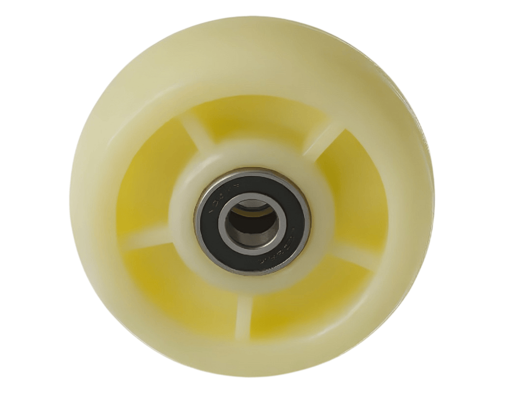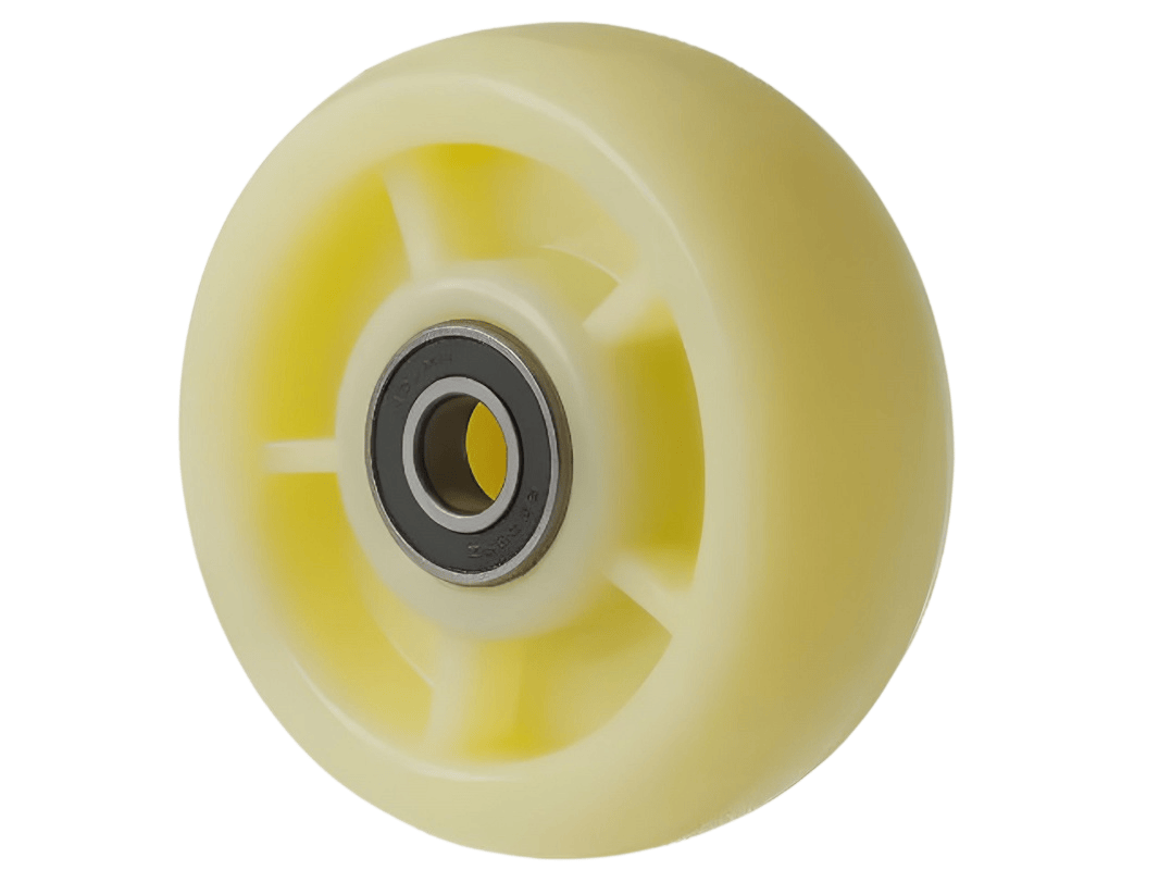 Нейлоновые колёса широко применяются в торговых центрах и медицинских учреждениях благодаря своим исключительным характеристикам. Они не изнашиваются при использовании на ровной поверхности, а оцинковка кронштейна обеспечивает надёжную защиту от коррозии. Эти колёса могут использоваться в условиях агрессивной химической среды, например, с моющими средствами или маслами.