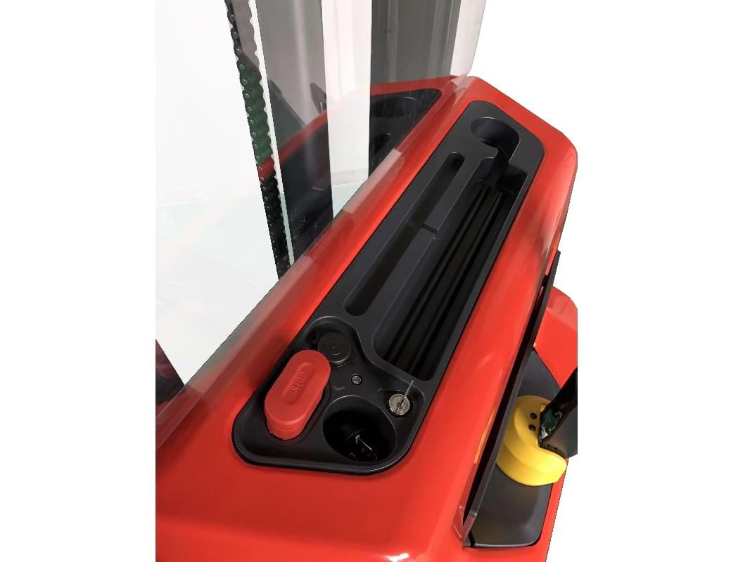 Аккумулятор повышенной ёмкости обеспечивает до 8 часов непрерывной работы. Безопасность оператора во время работы обеспечивается электромагнитным тормозом, высокой устойчивостью конструкции и защитным экраном. Мощная подъёмная станция и жёсткие вилы позволяют комфортно поднимать груз.