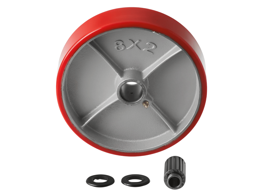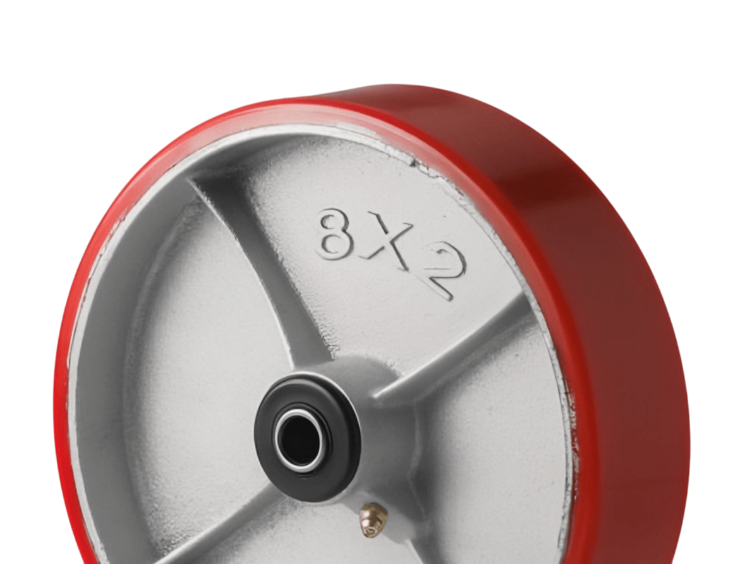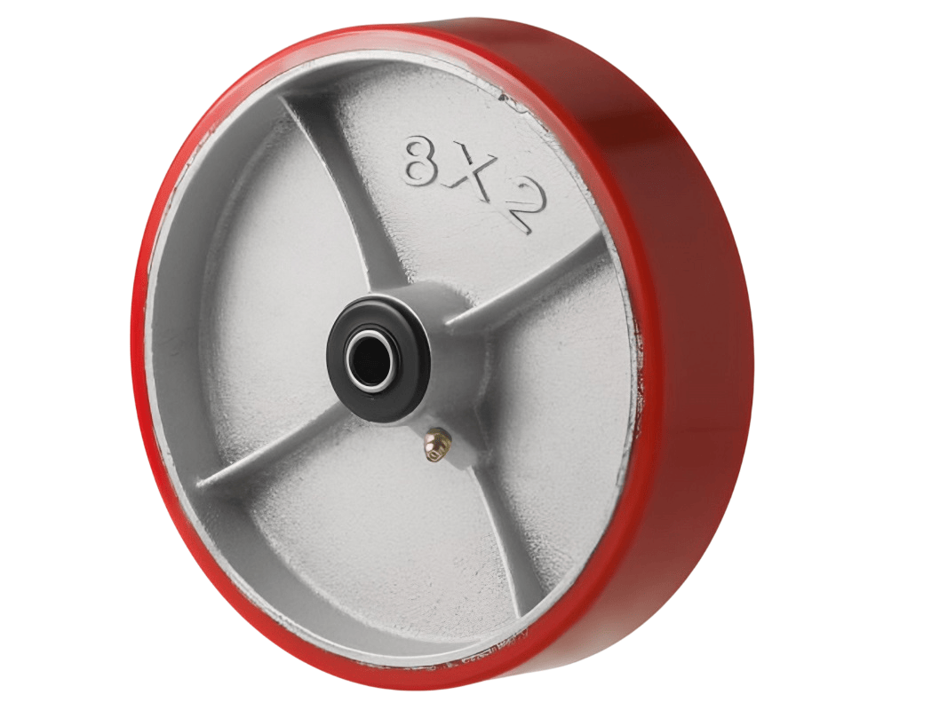 Колеса изготовлены из полиуретана, который надёжно соединён с чугунным ободом методом вулканизации. Это исключает риск отслоения шины. Обод оснащён дополнительными рёбрами жёсткости, а в оси установлен роликовый подшипник в стальной обойме. Колесо легко вращается, но при этом устойчиво к боковым и ударным нагрузкам.