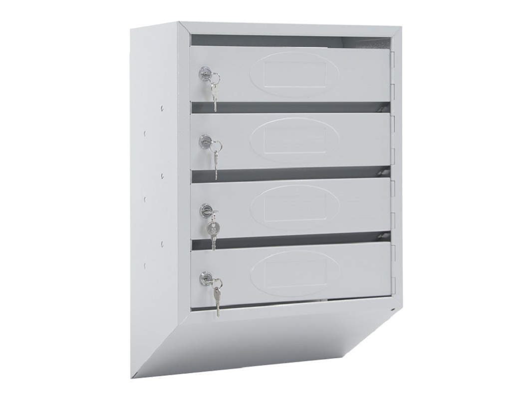 Каждая секция запирается на отдельный ключевой замок, который входит в базовую комплектацию, вместе с двумя запасными ключами. Ящики поставляются в собранном виде, а замки находятся в отдельном пакете внутри, что позволяет избежать их повреждения во время транспортировки.