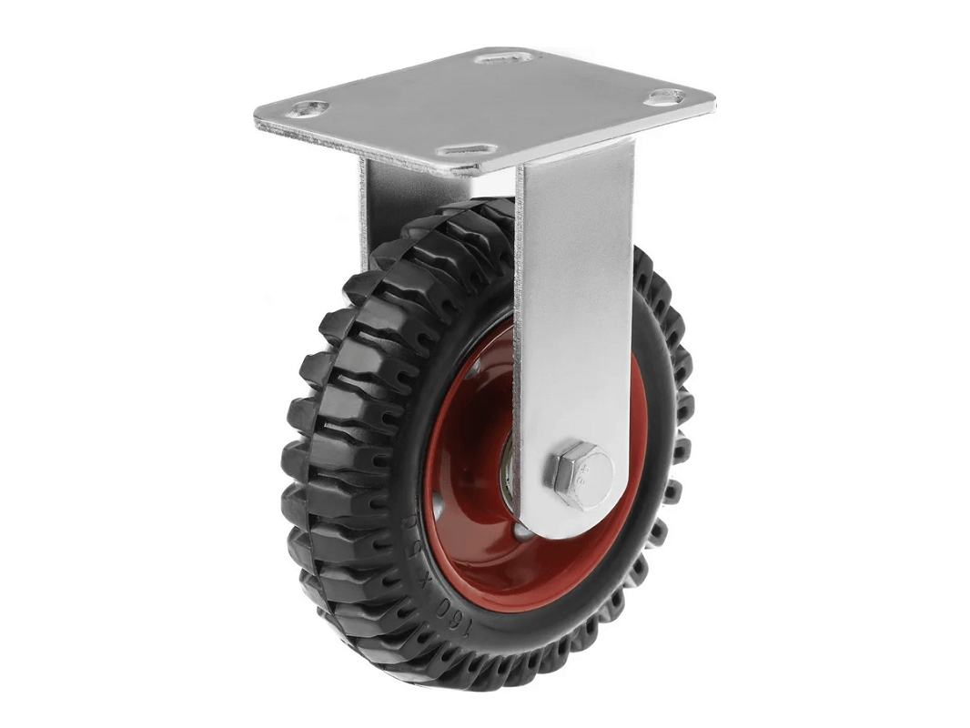 Колесо литое с протекторной резиной, металлическим ободом и шариковым подшипником, ось 17 мм, с неповоротной площадкой PF 160 (160 мм/400 кг) — это прочный и надёжный вариант для садовой и строительной техники. Они изготовлены из стального обода, шарикового подшипника и протекторной шины.